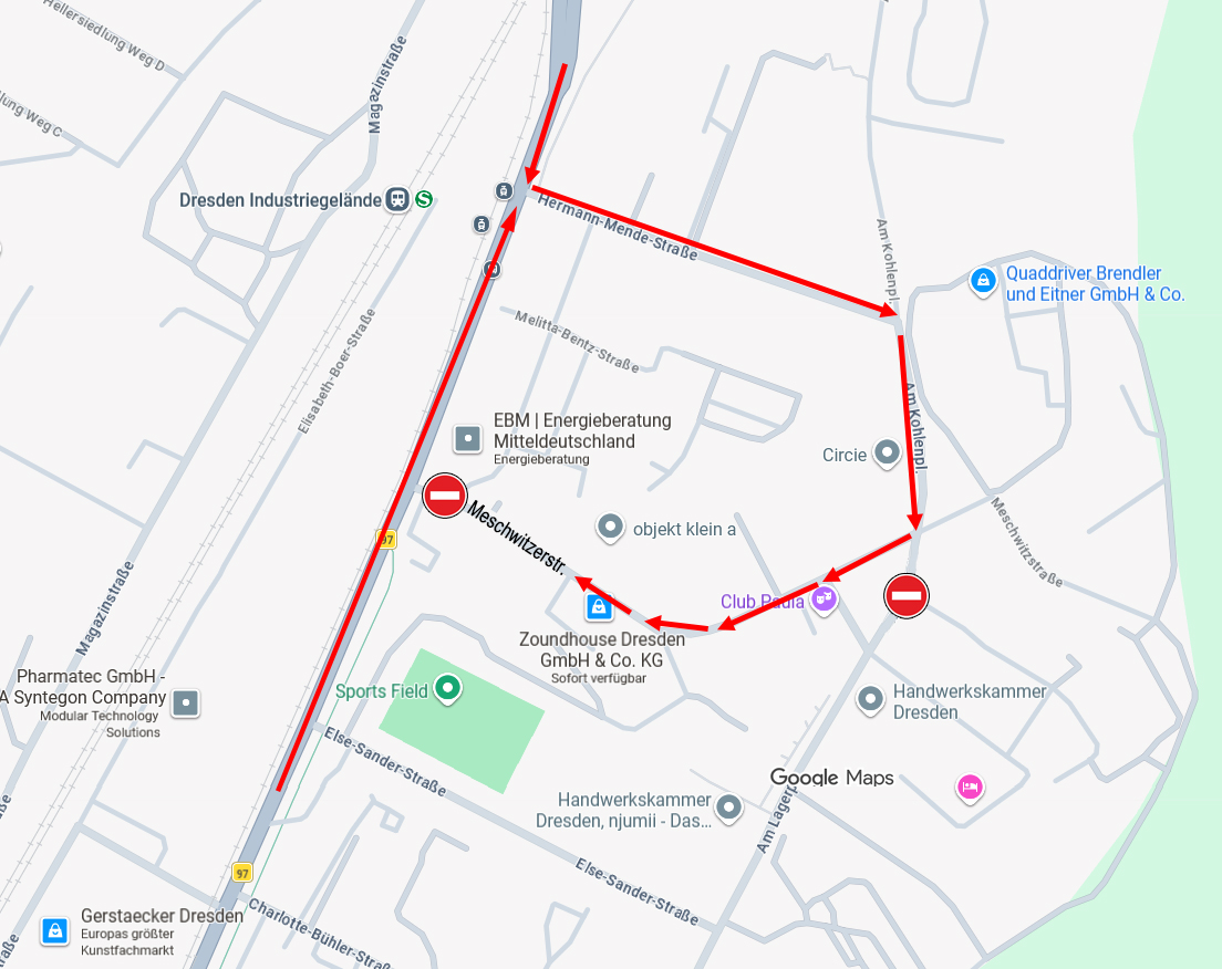 Ab dem 13.04.2026 ist die Zufahrt über die Meschwitzstraße wegen Bauarbeiten nicht möglich.