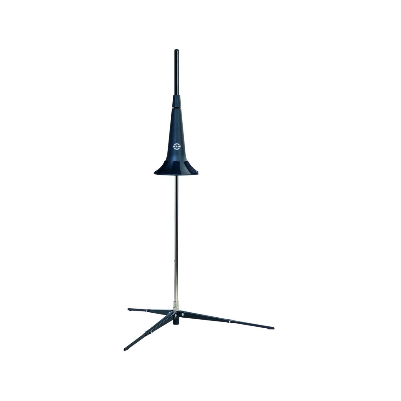 Klein zusammenlegbarer Ständer, der zum Transportieren komplett im Schalltrichter der Posaune verstaut werden kann. Der Ständer ist einfach aufzubauen und stufenlos höhenverstellbar. Die Filzauflagen am Kunststoffkegel schonen die Oberfläche des Instrume