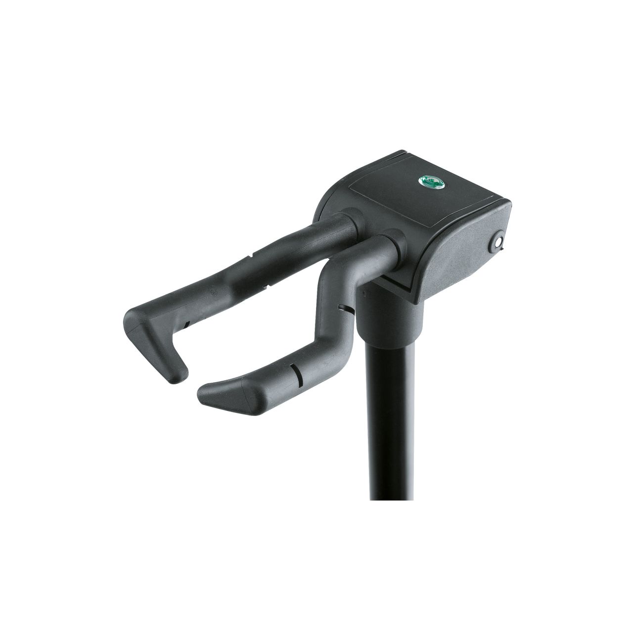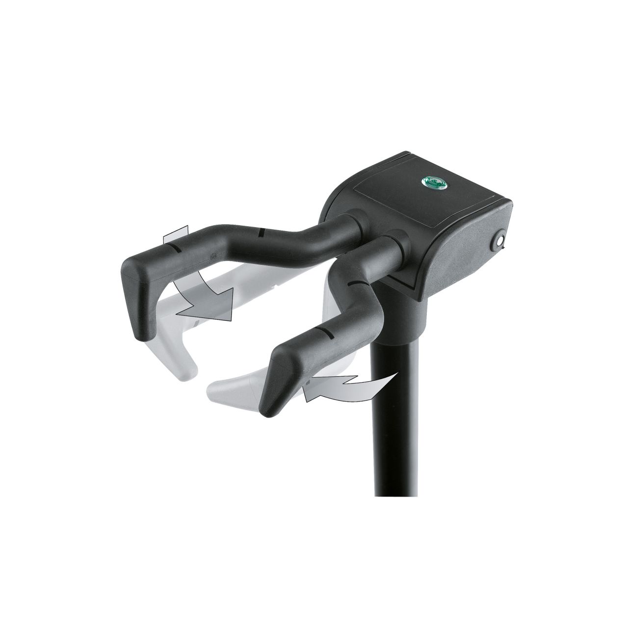 Zusammenlegbarer Ständer für Gitarren aller Art. Mit patentiertem, beweglichem Einhängesystem, dessen Bügel bei Belastung den Gitarrenhals einklemmen und sich bei Entlastung selbst öffnen. Besonders geeignet für asymmetrische Formen. Zapfen an den Bügelenden sorgen für zusätzliche Sicherheit. Höhenverstellbar mittels formschöner Klemmhebel. Verdrehsicheres Auszugsrohr und spezielles Gummipolster zum Schutz der Gitarrenoberfläche. Stabile Fußkonstruktion mit verstärktem Sockel.