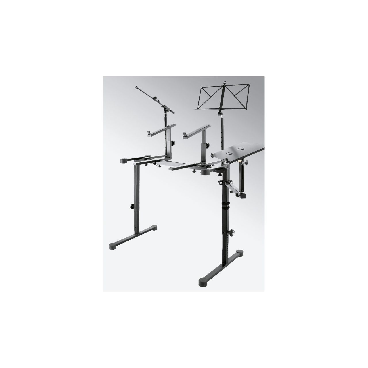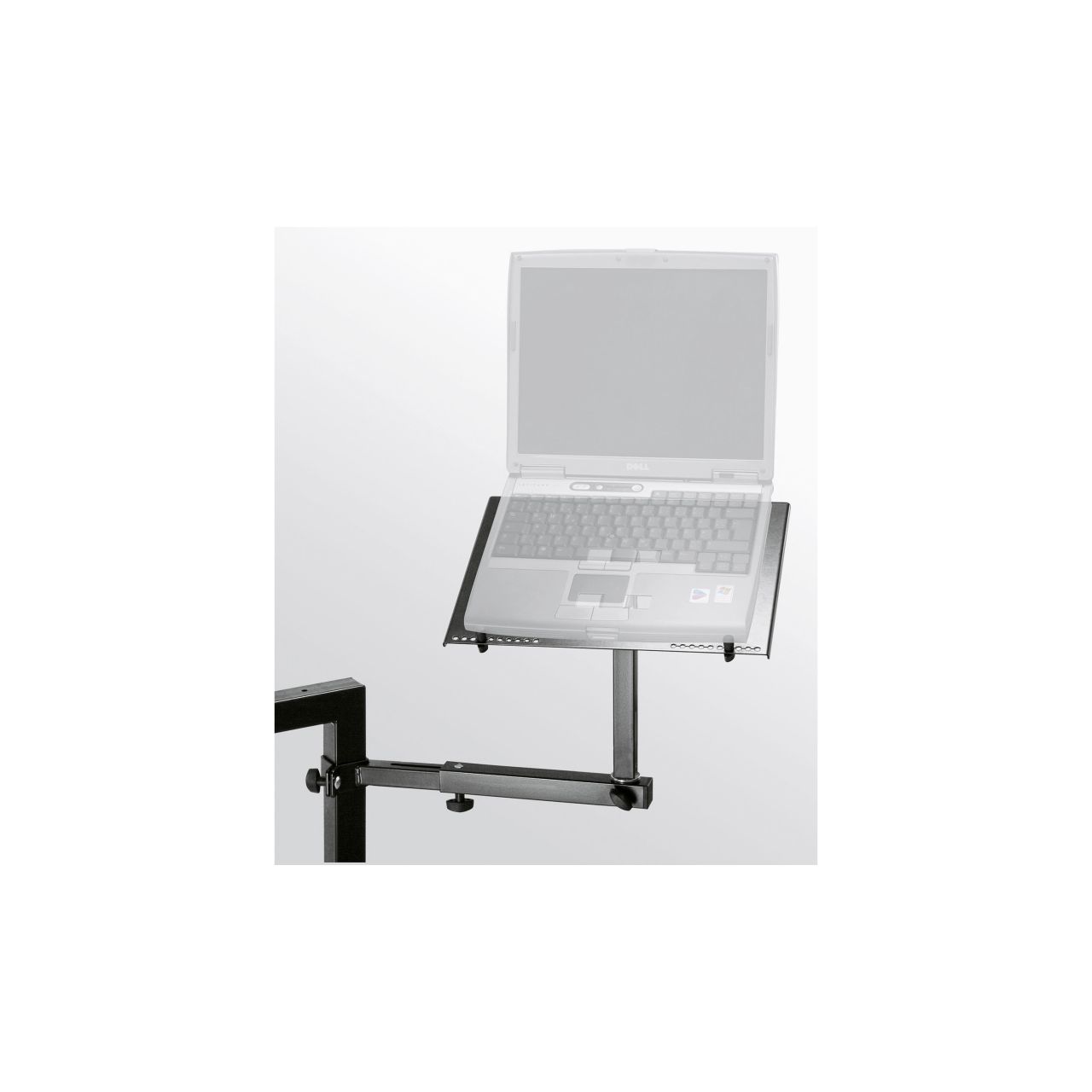 Beste Sicht auf Ihren Laptop garantiert diese neukonzipierte Halterung für die Keyboardtische 18810 Omega, 18950 und 18953. Vielseitiger geht es kaum. Der Halter ist in Höhe, Abstand und Richtung stufenlos verstellbar. Für die perfekte Neigung der Ablageplatte sind 8 verschiedene Einstellwinkel vorhanden. Darüber hinaus kann der Halter an jedem Standbein des Keyboardständers individuell befestigt werden. Dank der verstellbaren Anschlagstifte können die Anschlüsse am Laptop immer frei zugänglich gehalten werden. Außerdem ist hierdurch die Ablageplatte auch für kleinere Geräte wie z.B. iPad geeignet.