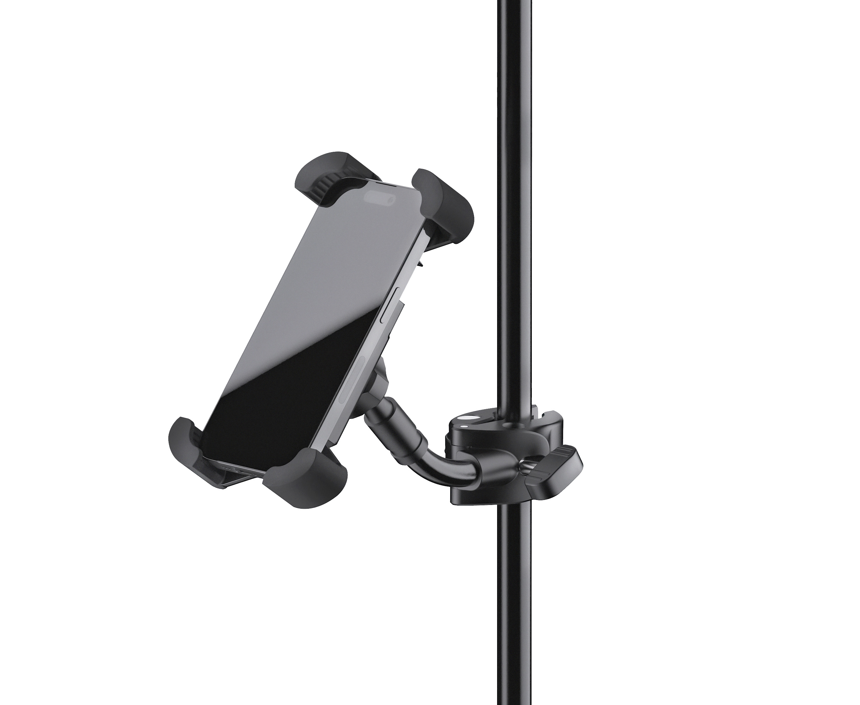 Mit diesem universellen Halter ist Ihr Smartphone immer in Reichweite. Der Halter ist geeignet für alle flachen Geräte mit einer Breite von 55 bis 85 mm und einer Höhe von 130 bis 180 mm. Die Tiefe von 15 mm ist zudem geeignet für Smartphones mit dickem Cover oder Case.Die Bedienung ist schnell und einfach. Eine Quick-Release-Taste auf der Rückseite mit Rastmechanismus entriegelt die gummierten Klemmbügel und das Smartphone kann kurzerhand entnommen werden. Dank des Kugelgelenks kann der Halter nach oben und unten geneigt und um 360° gedreht werden. Der flexible Haltearm sorgt für zusätzliche individuelle Positionierung. Ein stabiles Klemmelement mit bedienerfreundlicher Flügelschraube ermöglicht die schnelleMontage an jedem Rohr von 10 bis 30 mm Durchmesser.
