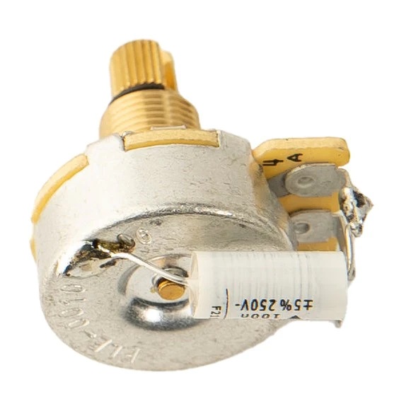 Dieses 250K-Potentiometer mit kurzem Schaft, ausgestattet mit einem .1μF-Kondensator für eine gezielte Klangregelung.
