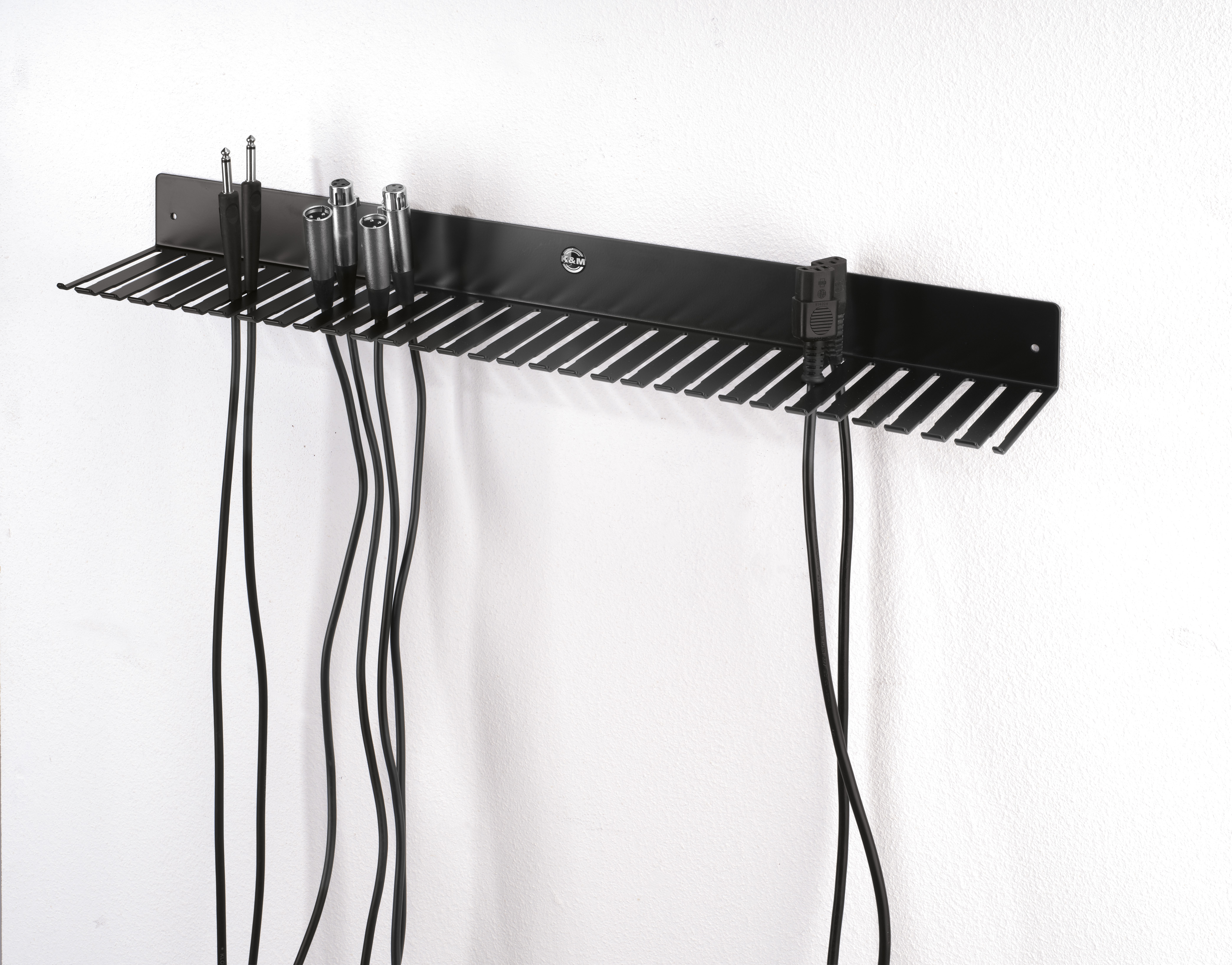 Der ideale Kabelwandhalter für Studio, Werkstatt und Proberaum. Die 2 mm dicke Stahlkonstruktion mit den Abmessungen 650 x 118 x 55 mm bietet genügend Platz für Mikrofon-, Instrumenten-, Adapter- oder Ladekabel. Die 31 Schlitze sind in den Breiten 5,3 mm bzw. 7,5 mm gefertigt. Eine strapazierfähige Pulverbeschichtung schützt vor dem Verkratzen.