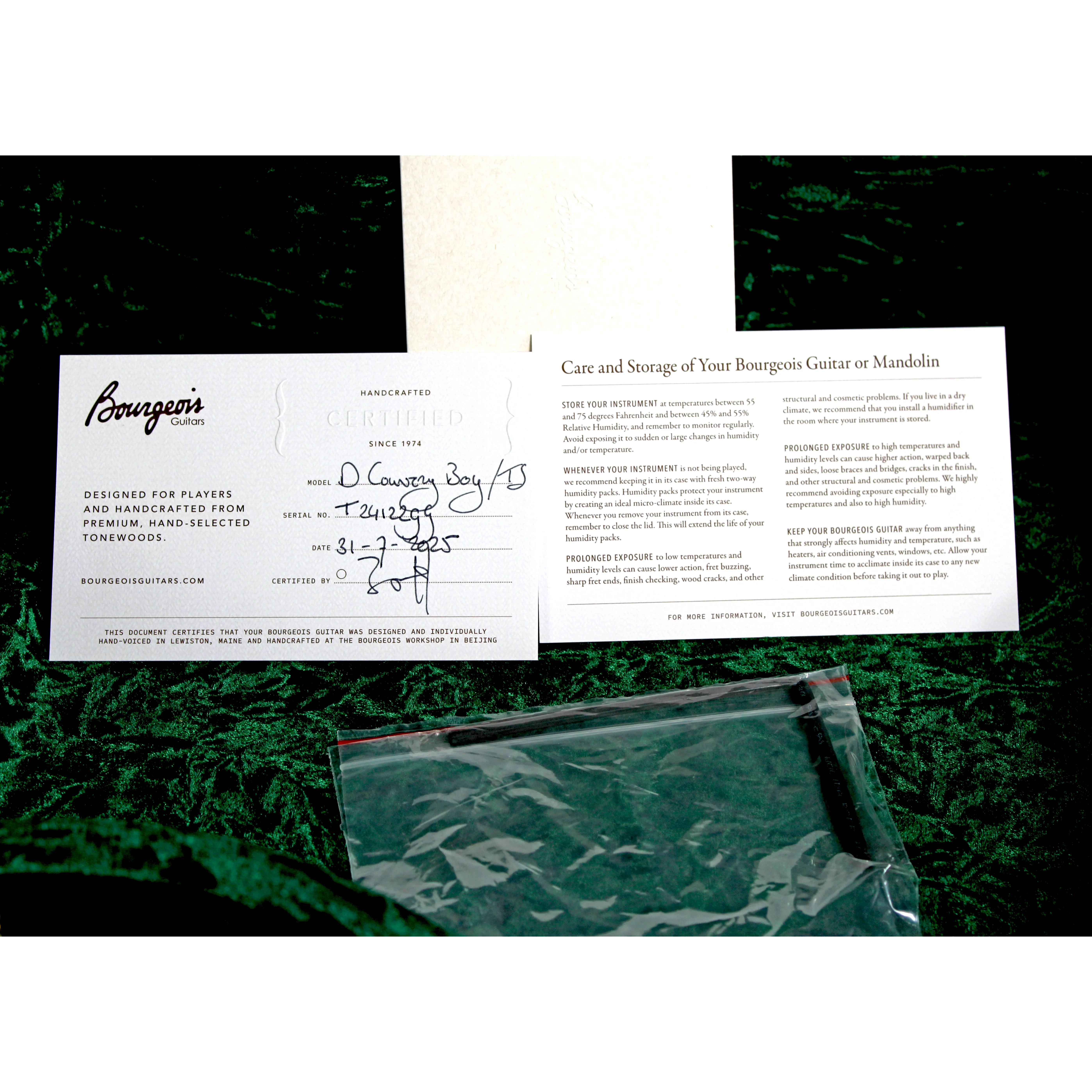 Die Bourgeois D Country Boy/TS aus der Touchstone Series verbindet traditionelle Bauweise mit moderner Präzision – perfekt für Gitarristinnen und Gitarristen, die Wert auf Klangreinheit, Dynamik und hochwertige Materialien legen. Die massive Sitka-Fichtendecke sorgt für ein brillantes Obertonspektrum, während Boden und Zargen aus Mahagoni einen warmen, durchsetzungsstarken Grundton liefern. Diese Dreadnought entfaltet ein breites Frequenzspektrum mit beeindruckender Lautstärke und Klarheit – ideal für kräftiges Strumming und präzises Fingerpicking.