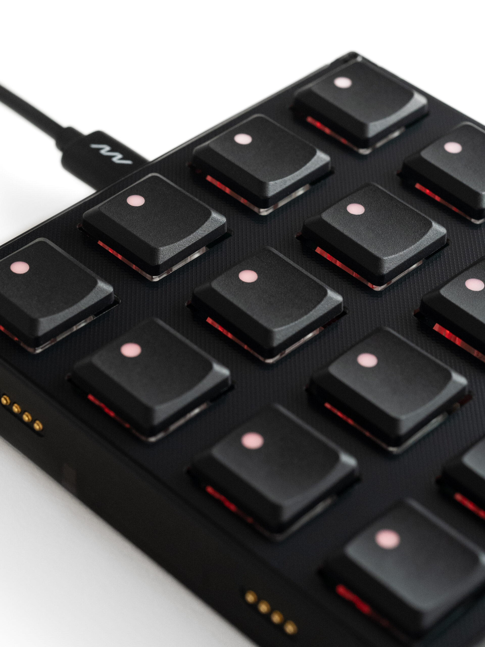 Das BU16 Series 3 ist ein kompaktes und ausdrucksstarkes Button-Modul, das für dynamische Steuerung in kreativen Umgebungen entwickelt wurde. Es verfügt über ein 4×4-Raster aus MX Gateron Hall-Effekt-Tastern, die anschlags- und druckempfindlich sind und so ein reaktionsschnelles, nuanciertes Spiel ermöglichen – ideal zum Triggern von Samples, Starten von Clips, Steuern von Transportfunktionen oder Finger-Drumming mit mehr Ausdruckstiefe.