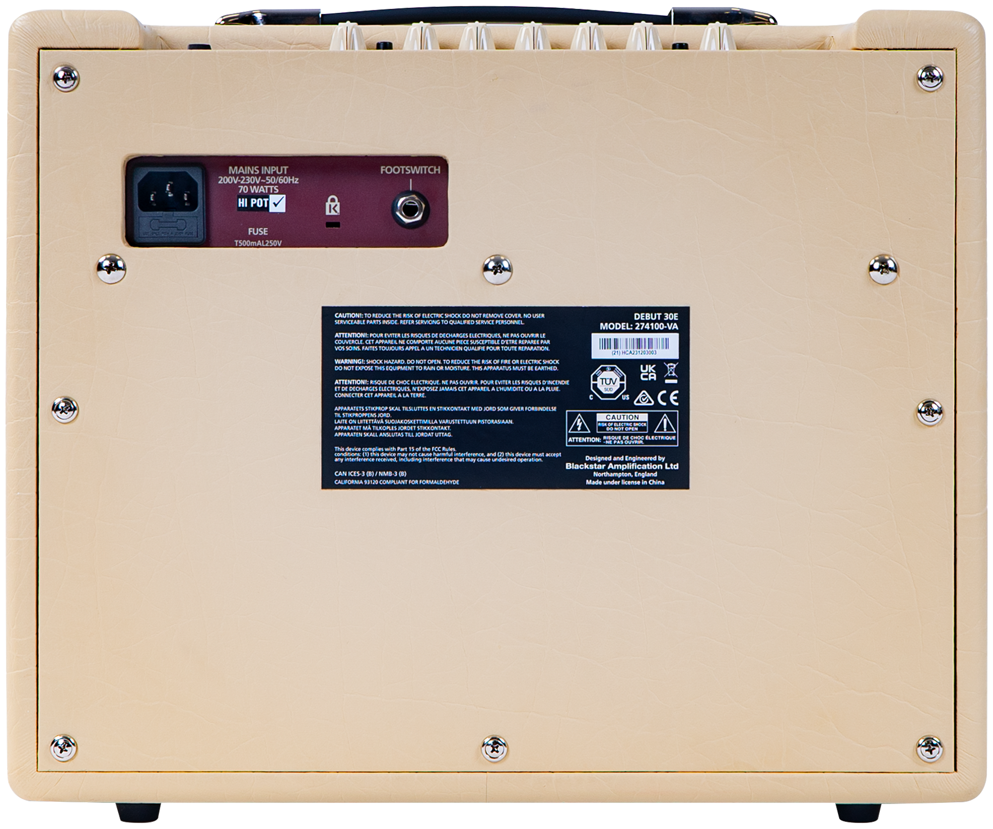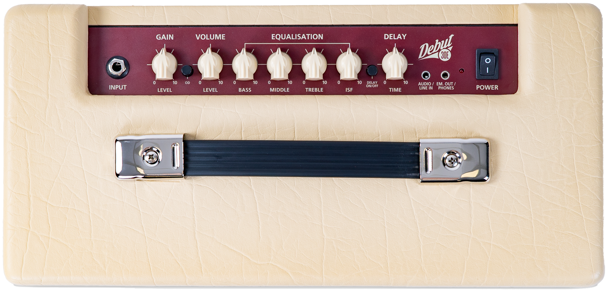 Der Debut 30E verfügt über zwei Kanäle, Clean und Overdrive, BLACKSTARs patentierte ISF-Klangregelung, einen eingebauten "Tape"-Delay-Effekt sowie einen Audioeingang und einen Emulated/Headphone-Ausgang. Der Line In kann zum Abspielen von Musik, Spielen, Filmen, Backing Tracks und mehr verwendet werden.