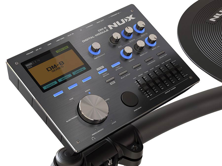 Das NUX DM-8 ist unser neuestes Drumkit mit neuen innovativen Technologien, die dem Schlagzeuger ein authentisches akustisches Spielgefühl und ein realistisches, ausdrucksstarkes Spiel ermöglichen. Das DM-8 verfügt über ein robustes Racksystem, das nicht nur langlebig ist, sondern auch gut aussieht, wenn Sie abrocken! Lesen Sie weiter, um mehr über die aufregenden neuen Funktionen zu erfahren!