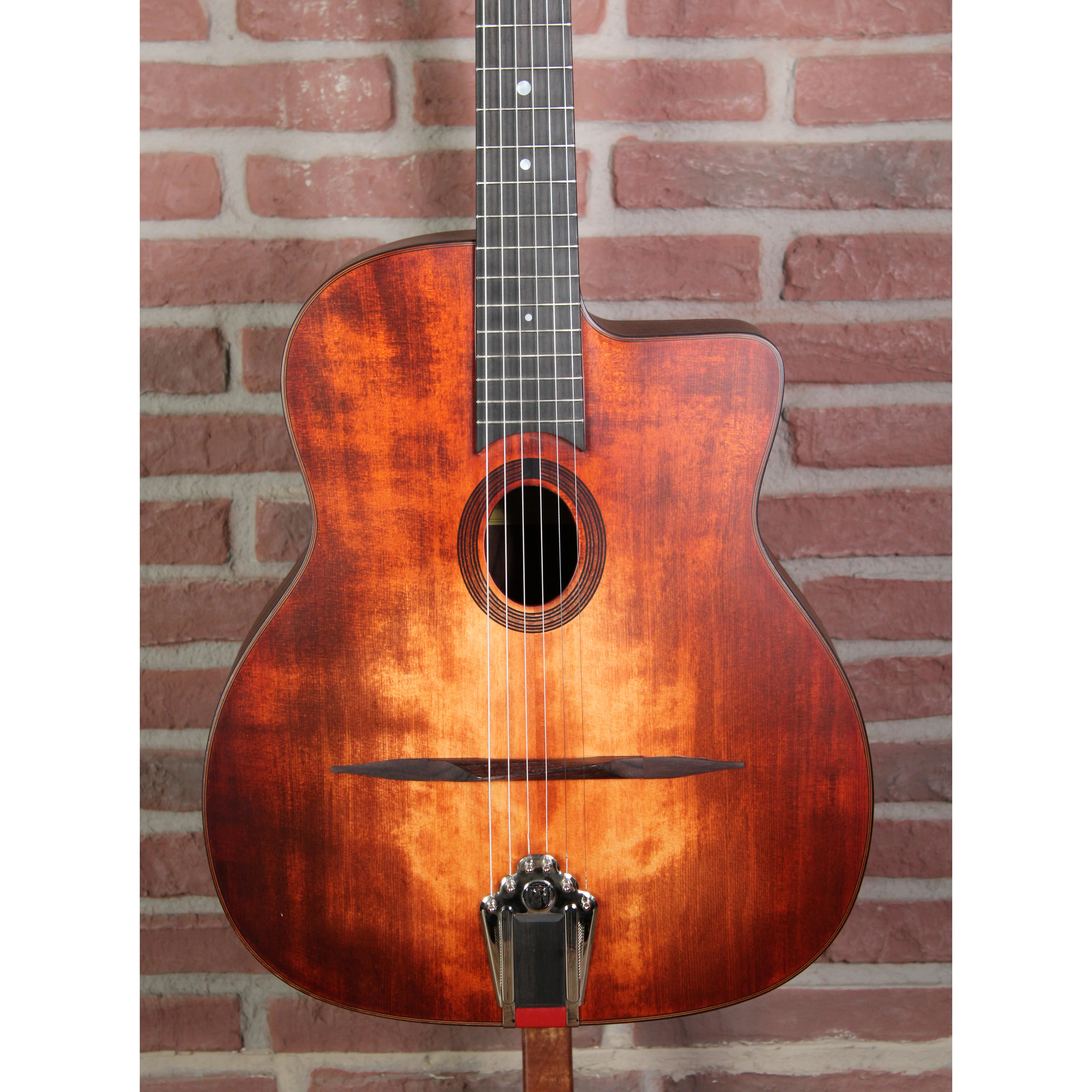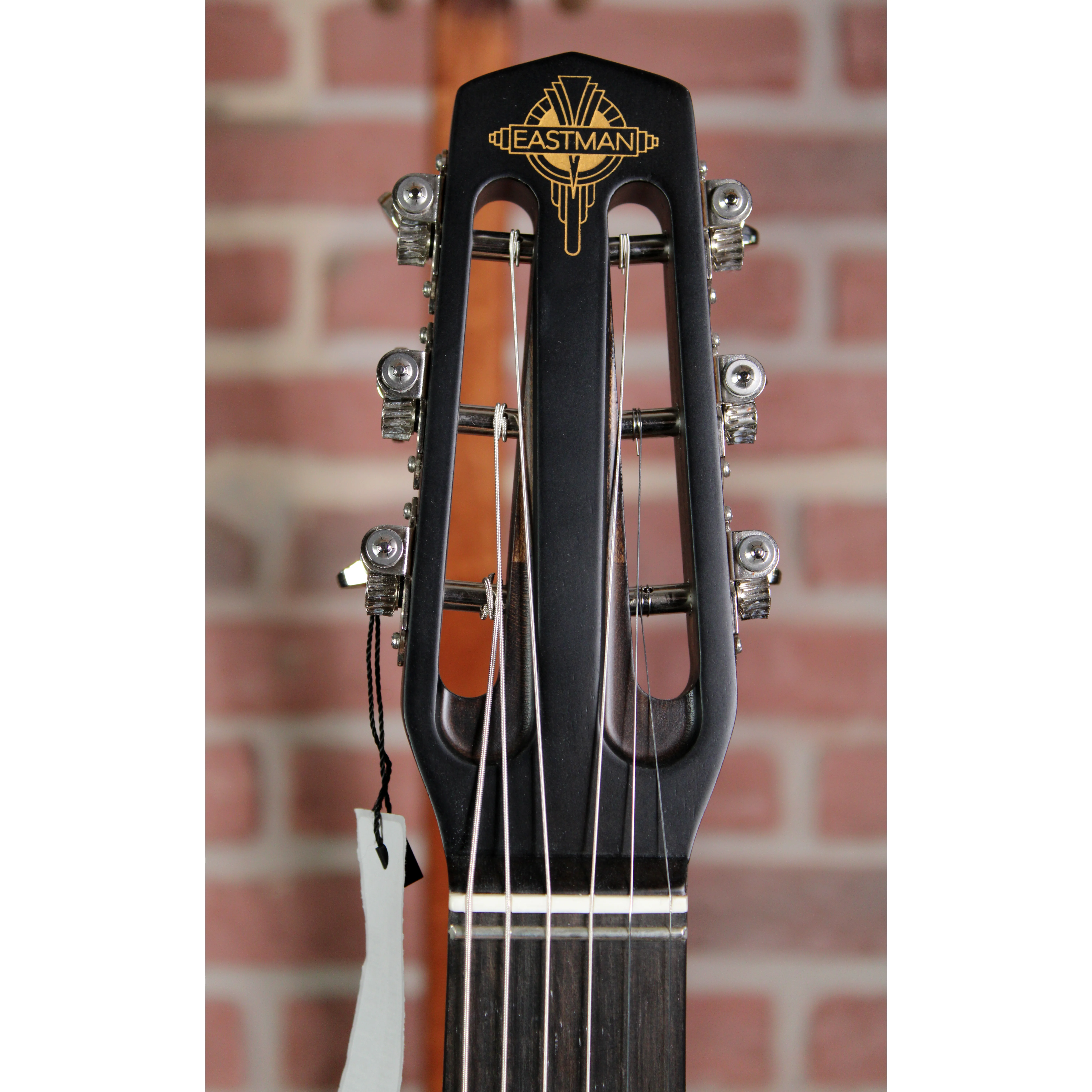 Die Doc-Martin Gypsy-Style - Gitarre. Design: Doc Martin. Eastman bietet mit den DM-Modellen eine traditionelle Jazzgitarre im gewohnten Selmer-Look mit O-Schalloch, Sitka-Fichtendecke und Palisanderkorpus, inklusive Hardshellcase.