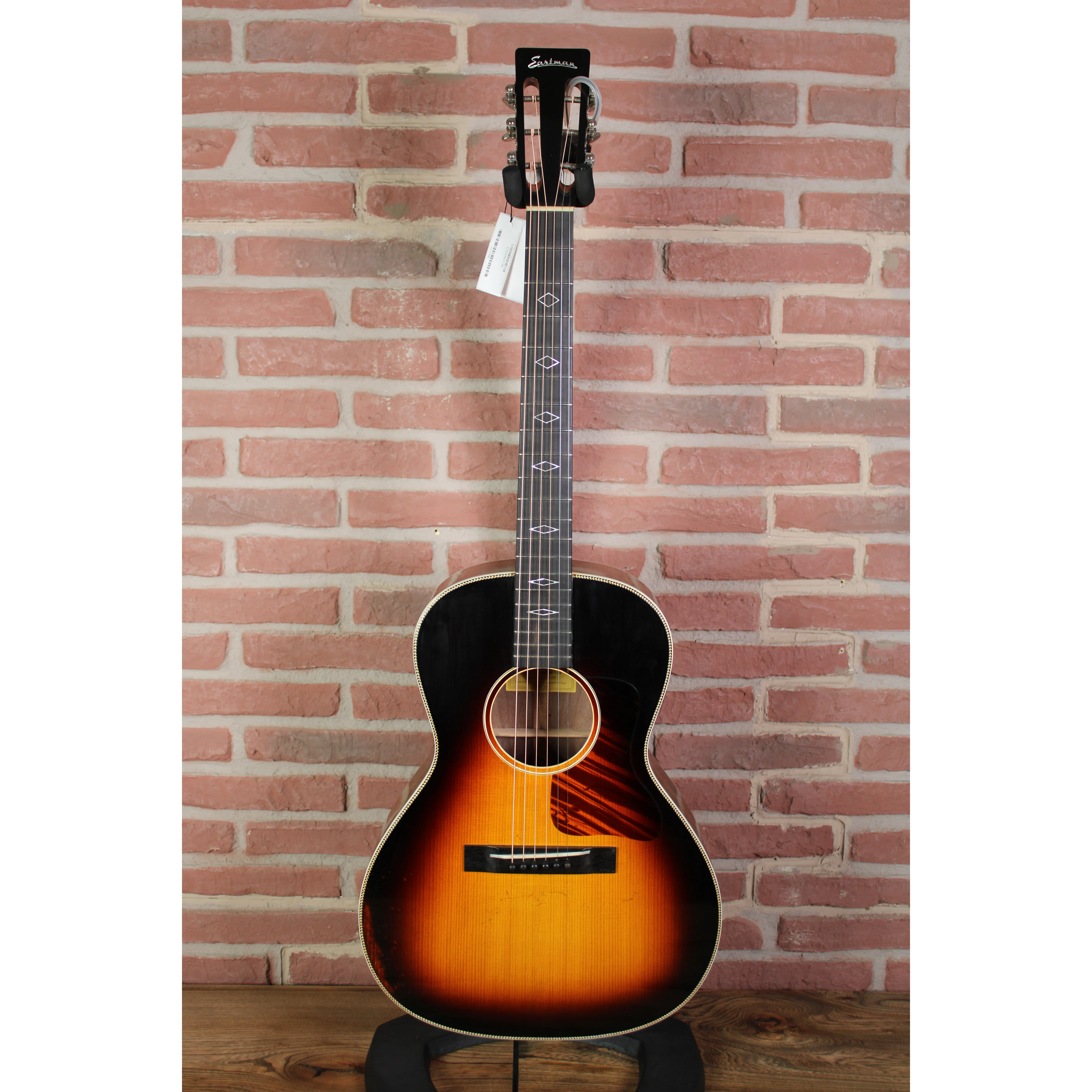 Die Eastman E22OOSS/V‑SB bietet eindrucksvollen Vintage‑Sound in einem handlichen Kowai‑Shoulder‑Format. Ihr kompakter 00‑Korpus mit Aussparung sorgt für hohen Spielkomfort und ermöglicht ein direktes, lebendiges Klangbild – ideal für Fingerstyle, Singer‑Songwriter und akustische Performer. Die thermo‑gebeizte Adirondack‑Fichtendecke klingt von Anfang an gereift, strahlt Kraft und Klarheit aus und verleiht Tiefe und Projektion, als würde die Gitarre bereits lange gespielt sein.