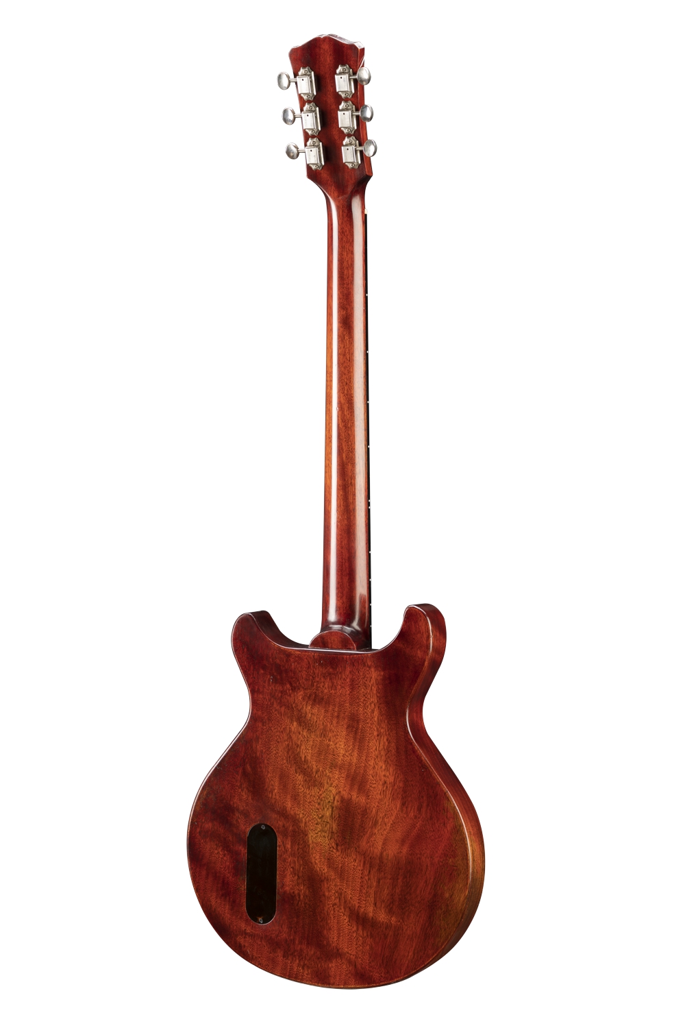 Der massive Mahagonikorpus ohne Kammern und der einteilige Mahagonihals sorgen für eine ausgezeichnete Resonanz und einen satten Ton. Das Ebenholzgriffbrett mit 22 Jescar Bünden, Pearl Dot Inlays und einem 12 Zoll Radius sorgt für hervorragende Bespielbarkeit und Komfort. Der Knochensattel mit einer Breite von 1.68 Zoll garantiert zudem eine präzise Intonation und ein exzellentes Spielgefühl.