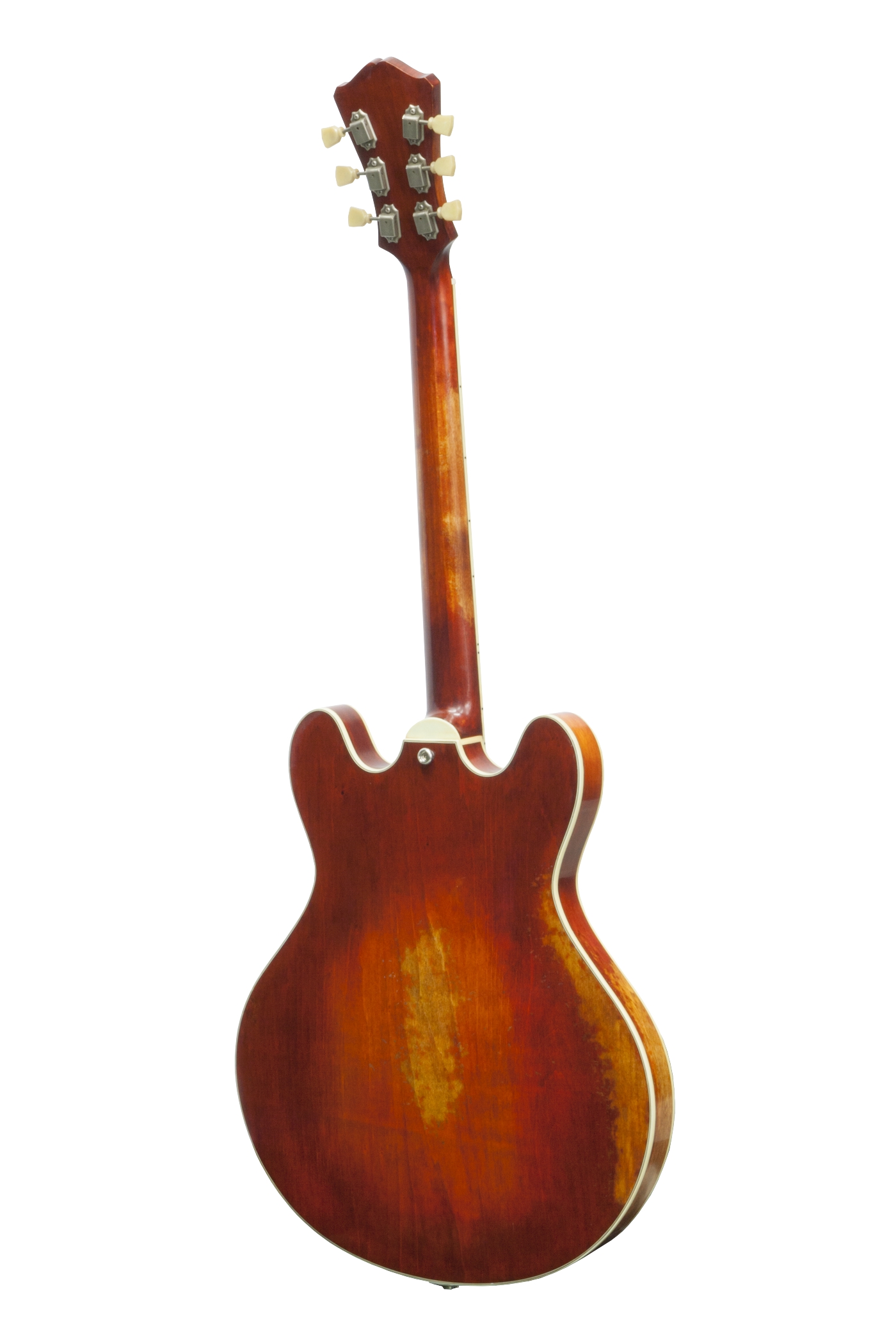 Optisch überzeugt die Gitarre mit einem eleganten Truetone‑Vintage‑Gloss‑Finish, voll umfänglicher Binding-Linierung und gealterter Relic‑Hardware: Gotoh Brücke, trapezförmiger Tailpiece und SD90‑Mechaniken setzen stilsichere Vintage‑Akzente. Besonderer Clou: Der Korpus ist nicht massives Holz, aber dennoch resonant und leicht – für Komfort und Klang in harmonischer Balance.