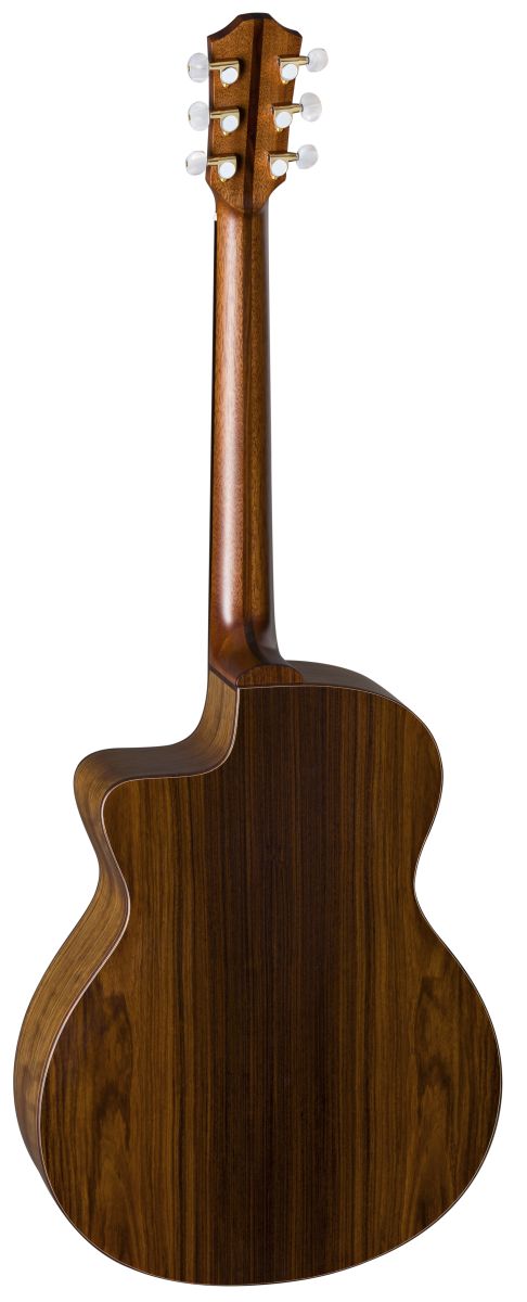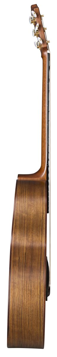 Die massive Fichtendecke sorgt für brillante Höhen und klare Ansprache, während der massive Pau Ferro-Boden mit laminierten Walnusszargen einen warmen, ausgewogenen Ton liefert. Der Mahagonihals in Kombination mit dem Palisandergriffbrett ermöglicht eine komfortable Bespielbarkeit, ideal unterstützt durch die Fan Frets (Multiscale), die für optimale Saitenspannung und Intonation über alle Lagen sorgen.