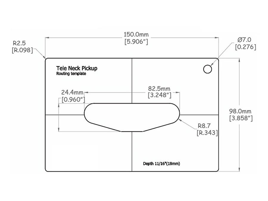 Pickup-Frässchablone aus 8 mm dickem, klarem Acryl, um perfekt geformte Pickup-Hohlräume zu schaffen. Die genaue Platzierung der Schablone ist einfach: kristallklare Frässchablonen ermöglichen es Ihnen, den Gitarrenkorpus darunter zu sehen. Richten Sie einfach die lasergravierten Mittellinien der Schablone an den Markierungen Ihrer Gitarre aus, damit die Platzierung jedes Mal stimmt.