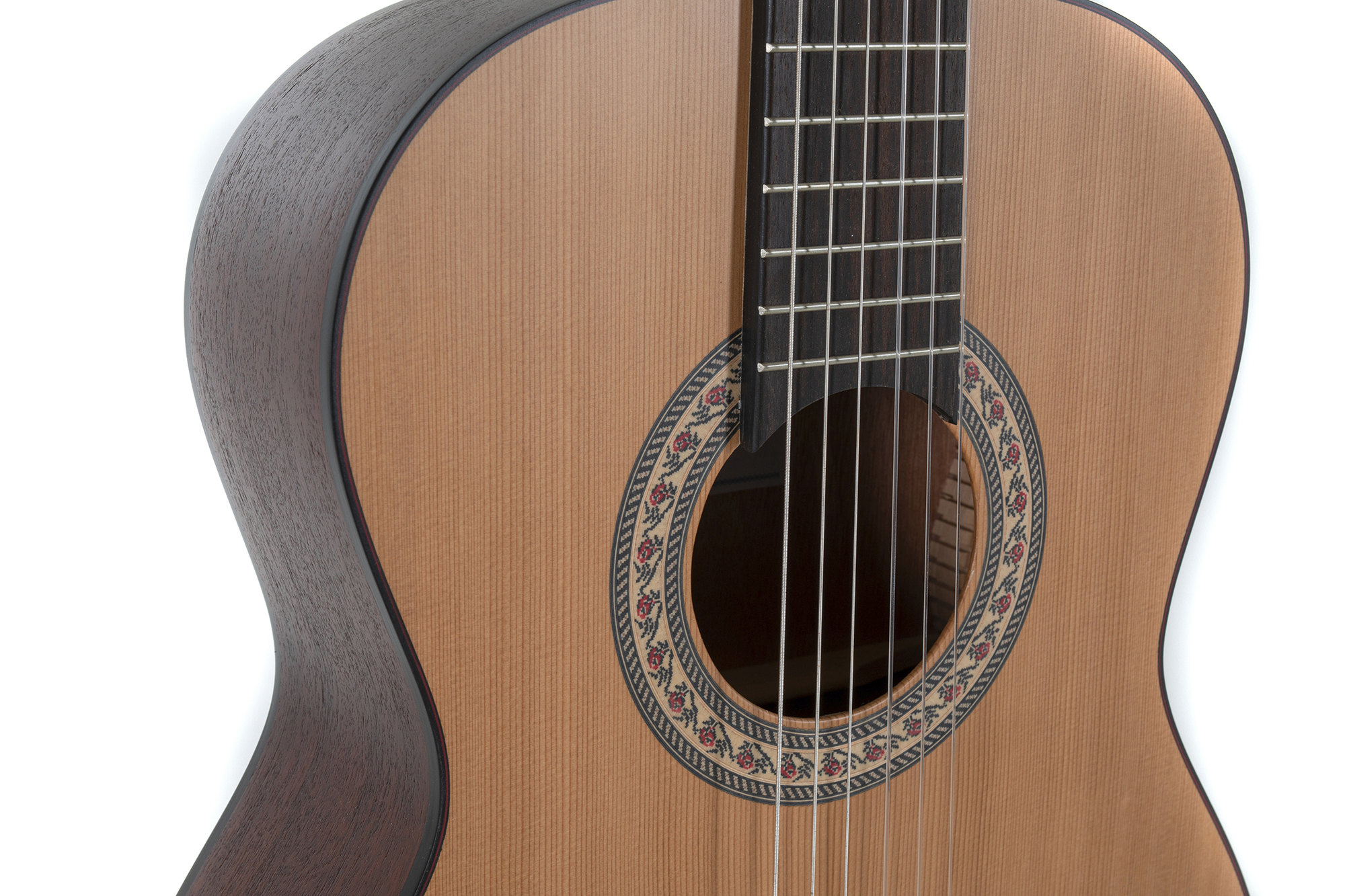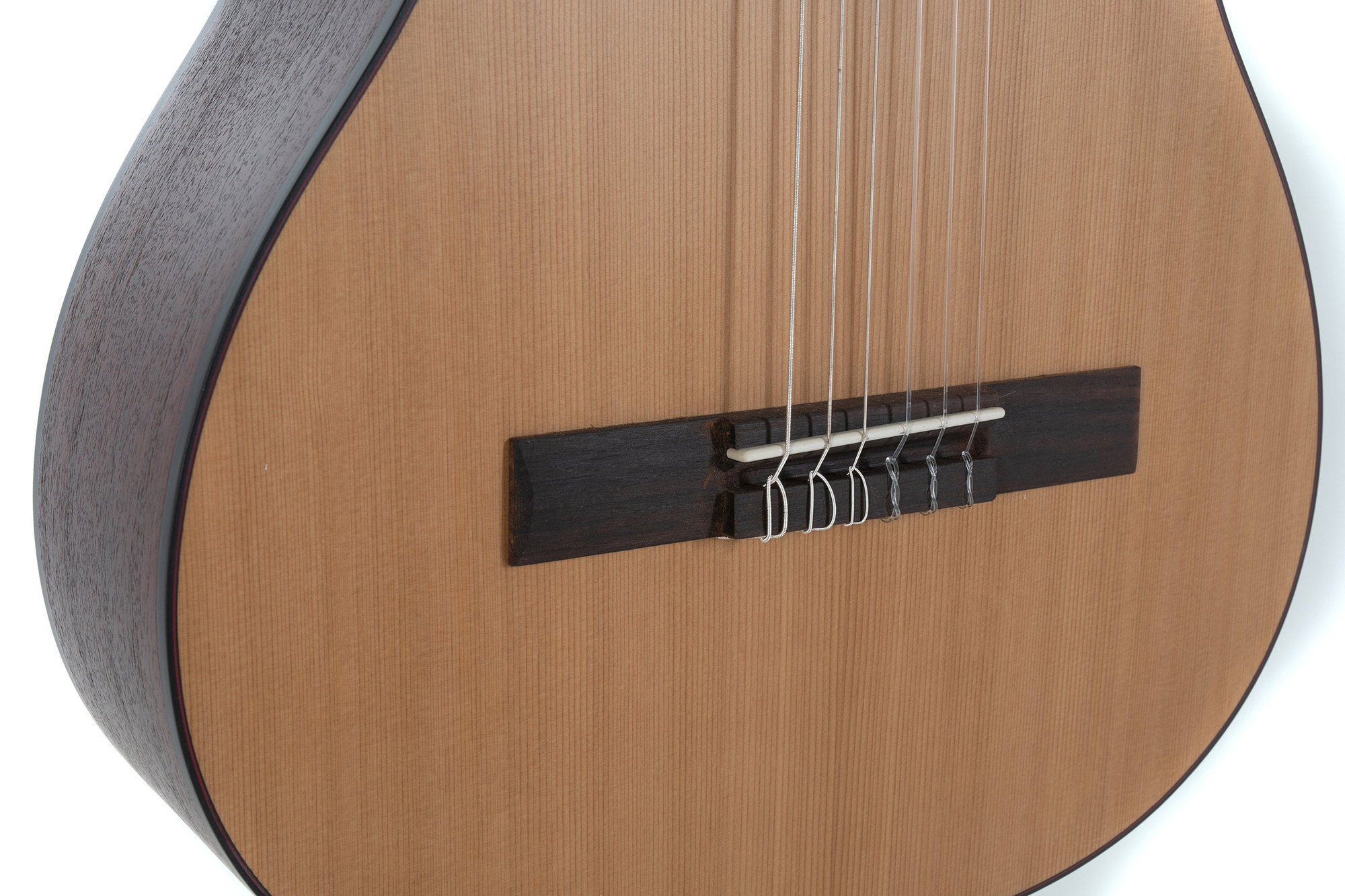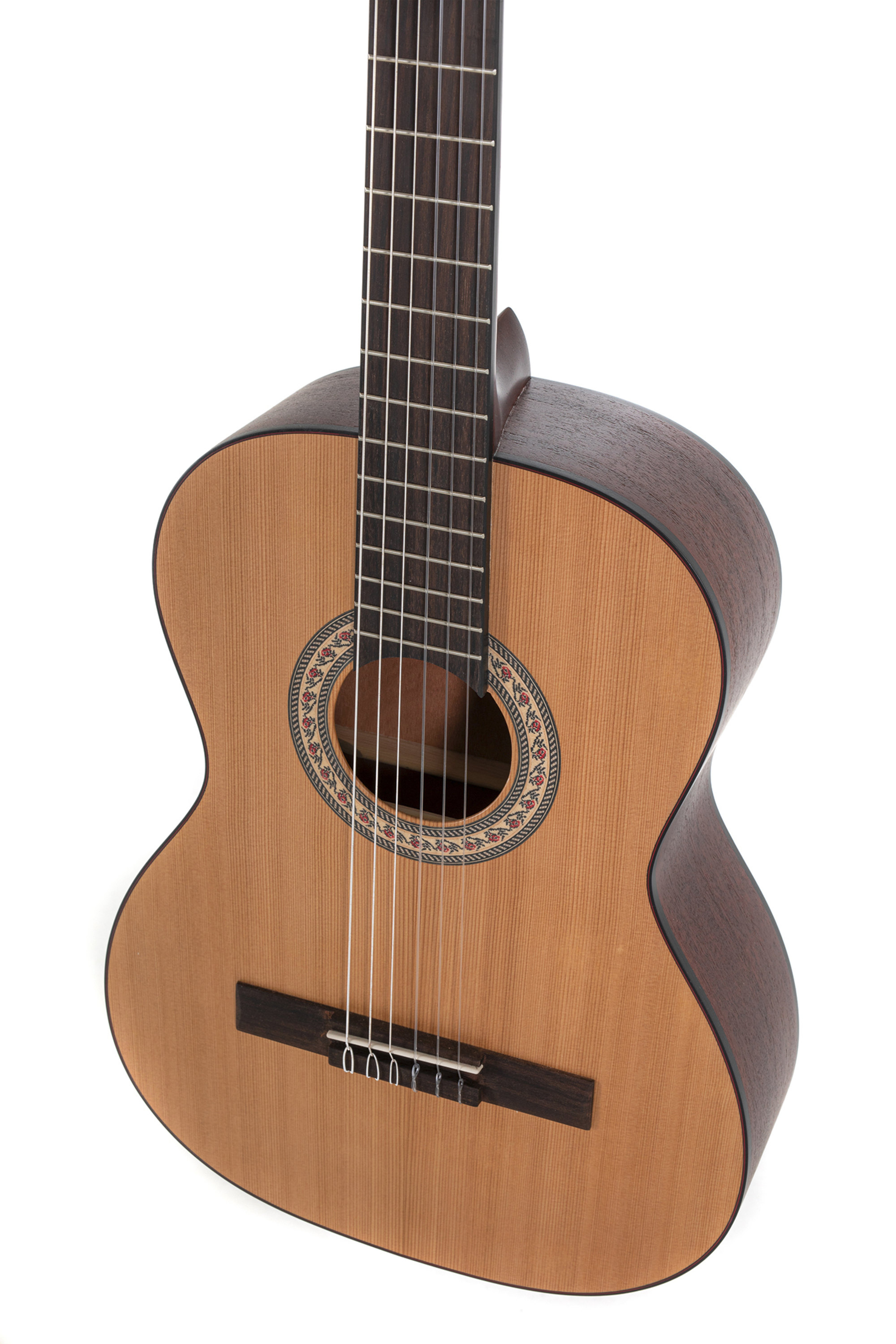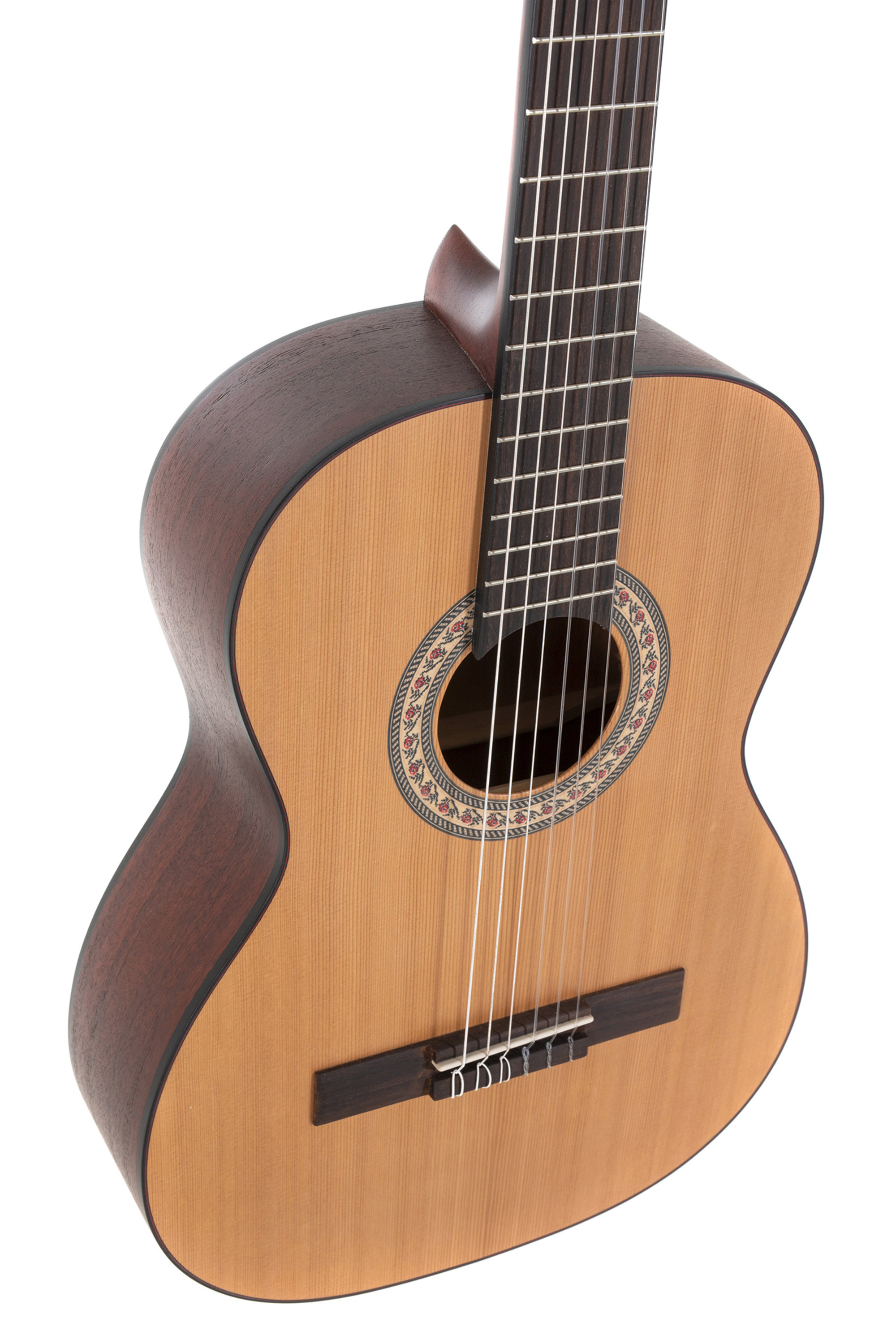 Der Gitarrenkorpus ist ganz nach traditioneller Bauart zusammengesetzt: Für die Decke wird massive Fichte oder Zeder verwendet, Boden und Zargen sind aus Sapelli. Die wasserbasierte Öko-Mattlackierung sorgt für eine angenehme Haptik und trägt auch wesentlich zu dem offenen Klangcharakter der Instrumente bei, da das Holz durch die offenporige Behandlung viel freier schwingen kann.