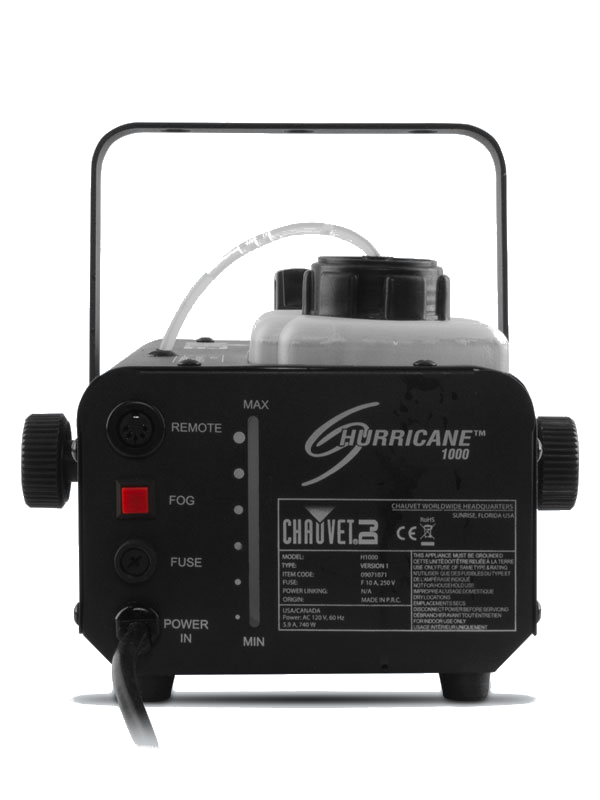 Trotz ihrer kompakten Bauweise überzeugt der Hurricane 1000 mit einem beachtlichen Ausstoßvolumen von 10.000 CFM, was auch größere Räume oder Showelemente zuverlässig betont. Das Gerät lässt sich über das mitgelieferte verkabelte oder kabellose Remote bequem aus der Ferne steuern – ob für präzise Aktivierung oder spontane Nebel‑Effekte. Der manuelle Fog‑Knopf erlaubt zugleich eine direkte Kontrolle direkt am Gerät.