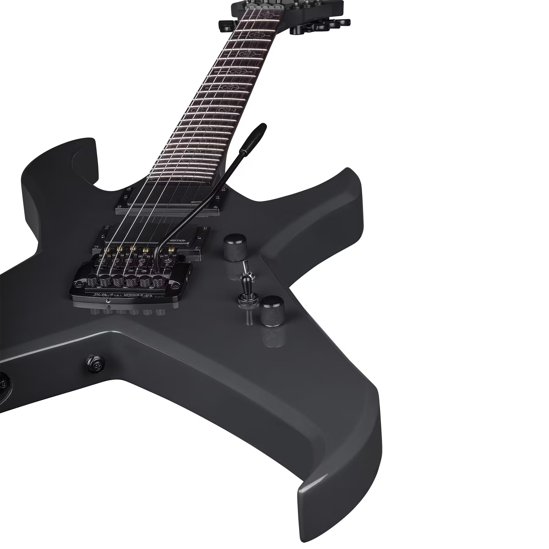 Ausgestattet mit aktiven EMG-Humbuckern (81 an der Brücke, 85 am Hals) plus integriertem PA2-Preamp-Booster, bietet die Overlord druckvollen, klaren High-Gain-Sound – perfekt für moderne Metal-Genres. Das Kahler Hybrid Tremolo-System sorgt für maximale Kontrolle bei Bendings und Divebombs, während Grover-Mechaniken die Stimmung zuverlässig halten.