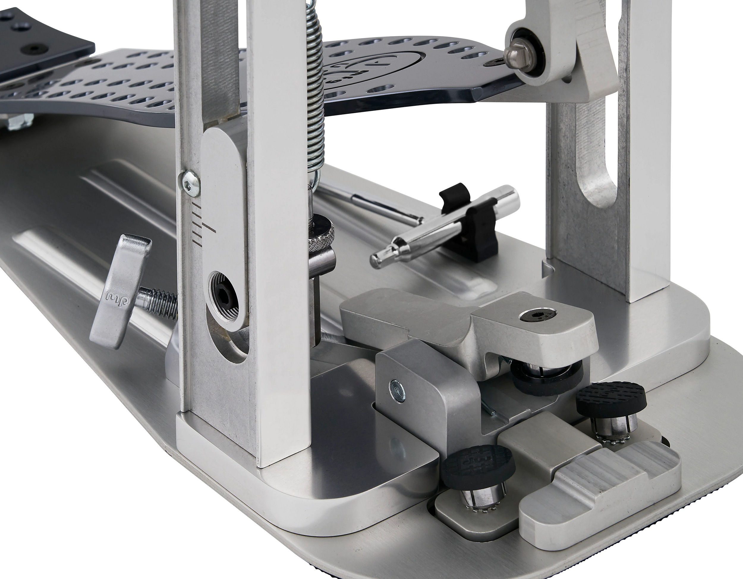 Zu den Standard-Features gehören ein neu entwickeltes, massives Aluminium-Fußbrett mit Perforationen und konturierter Fersenplatte, das Interlocking Delta Hinge, die Tri-Pivot Toe Clamp, eine massive Aluminium-Direct-Drive-Cam mit TBT (Threaded Bearing Technology) und Pivot-Einstellung, das VERT-System (Vertical Spring Adjustment), der Control Beater mit einstellbarem Gewicht/Aufschlag und vieles mehr. Mit seinem auf Drummer abgestimmten Spielgefühl und der hochentwickelten, modernen Bauweise ist das brandneue DW Machined Direct Drive prädestiniert, zur ersten Wahl für Schlagzeuger zu werden.