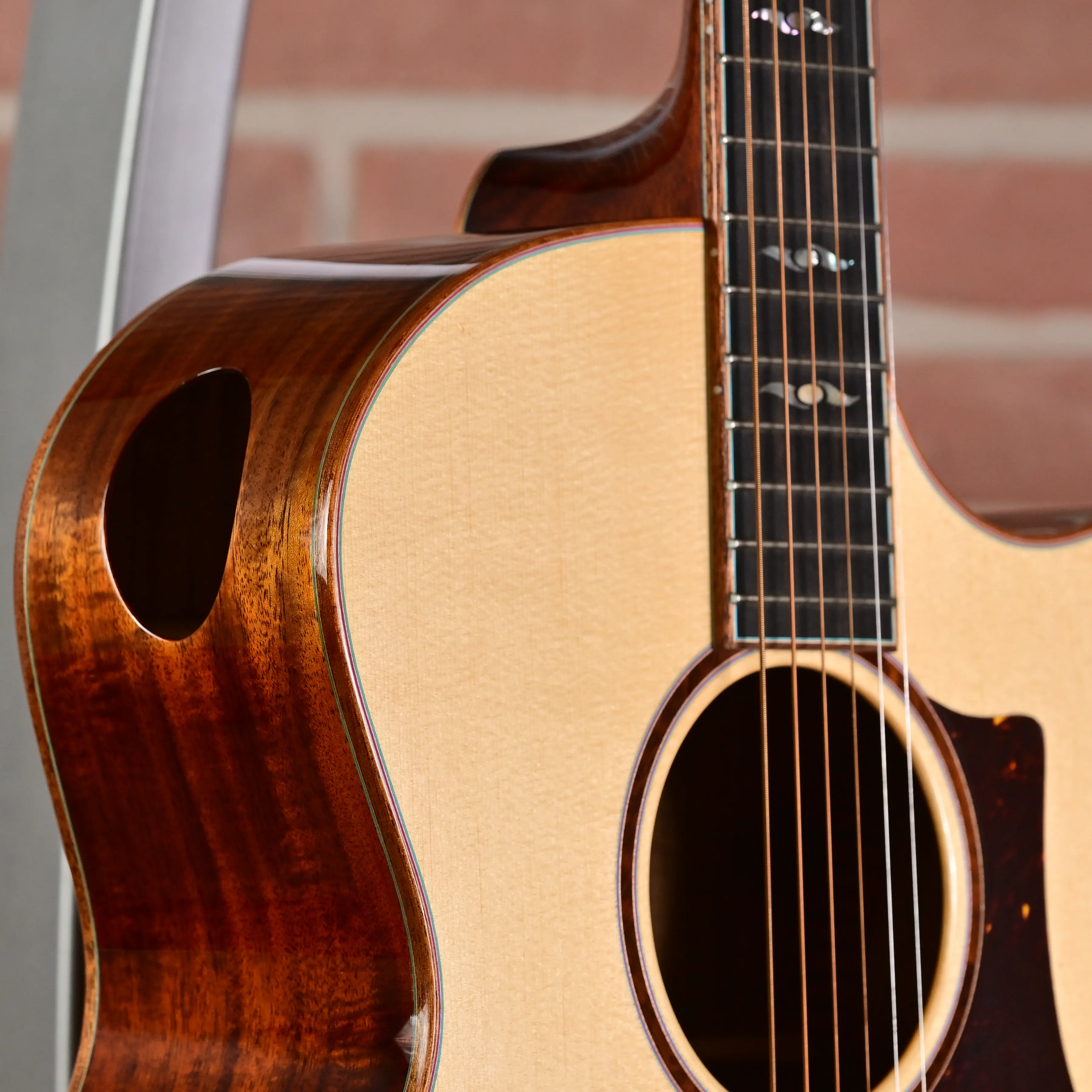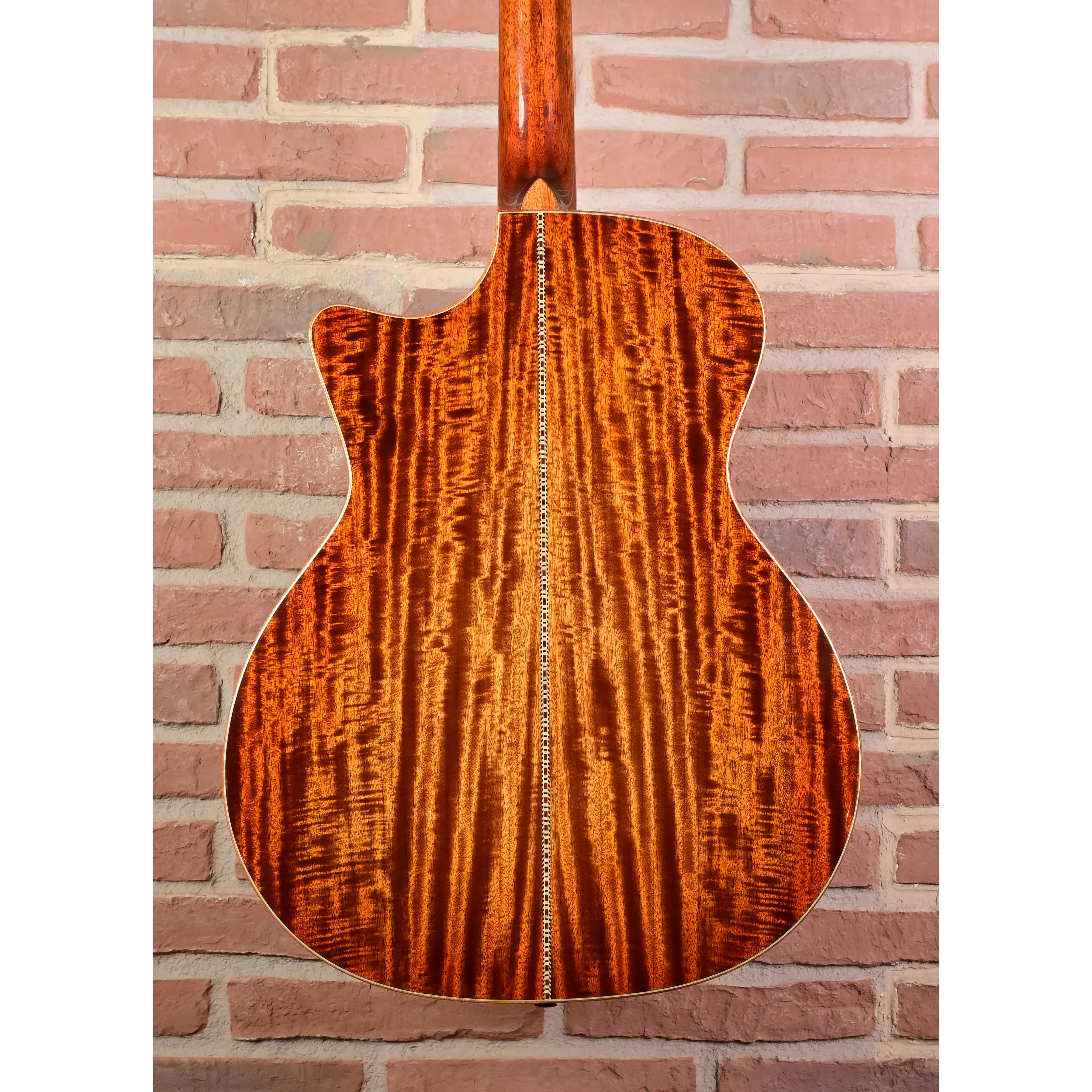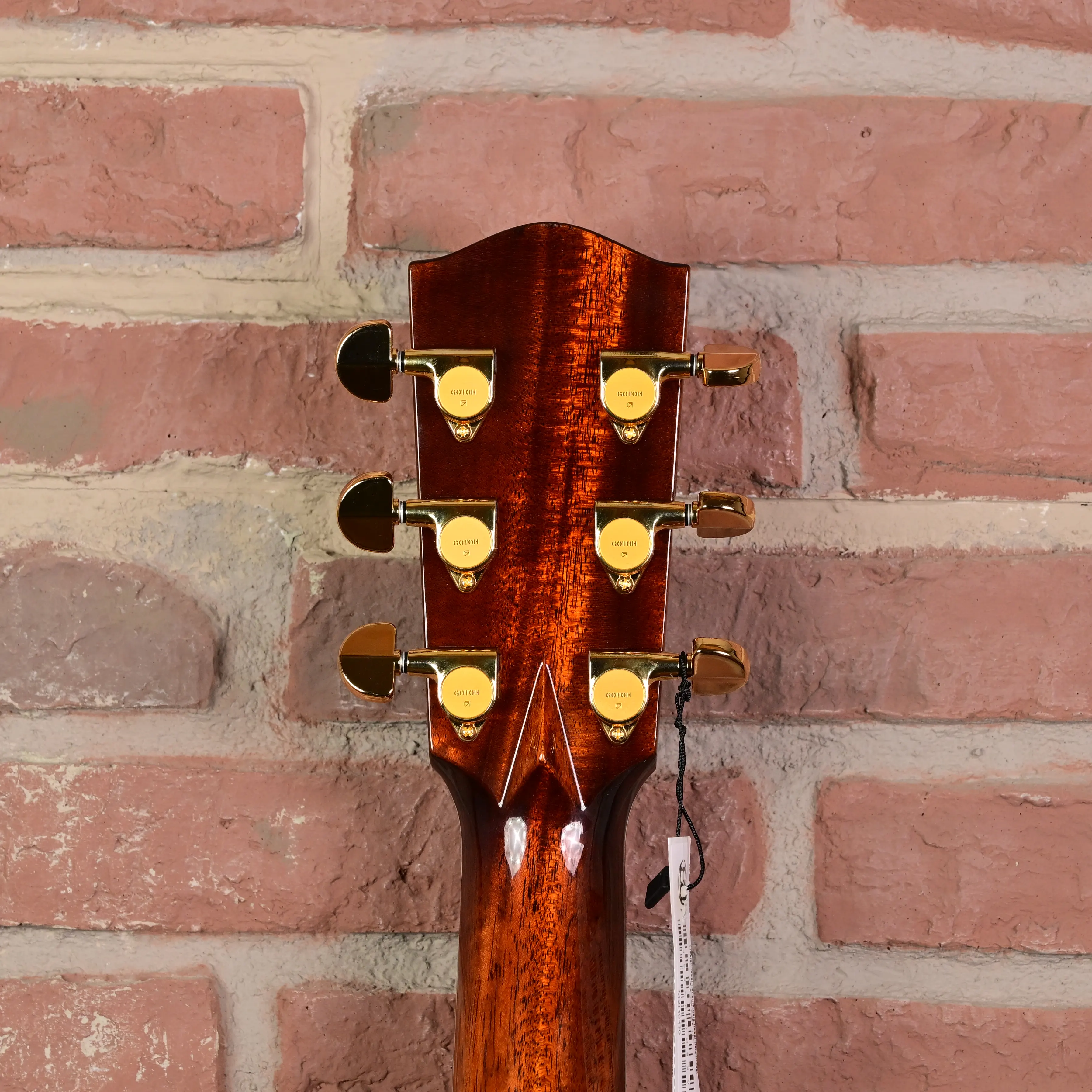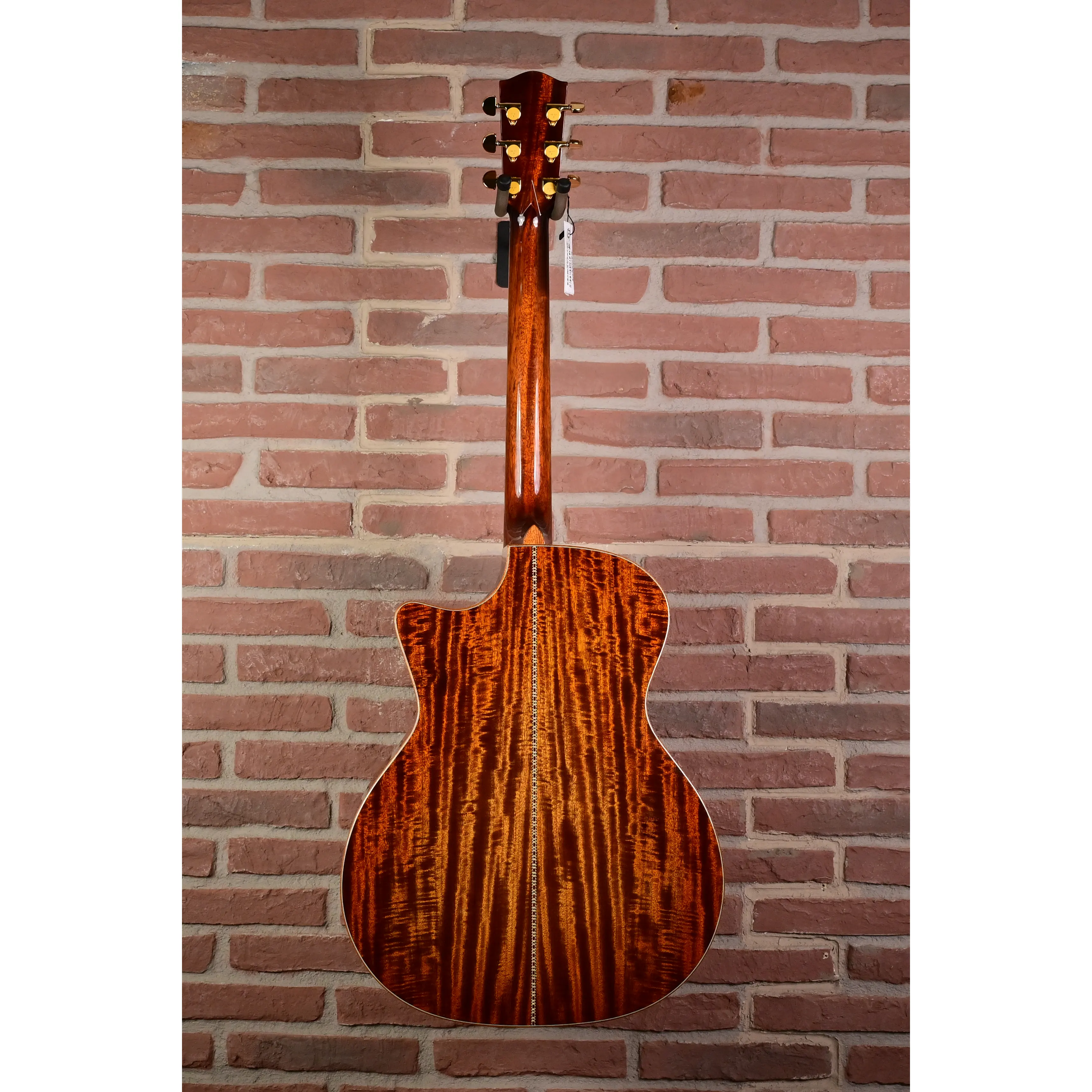 The mahogany neck with an “Even C” profile and ebony fingerboard offers a very comfortable playing feel. For stage use, it is equipped with the L.R. Baggs Element EAS VTC pickup system. Visually, it impresses with its high-gloss natural finish, ivoroid binding, mother-of-pearl inlays, and high-quality gold hardware. A matching hardshell case is included.