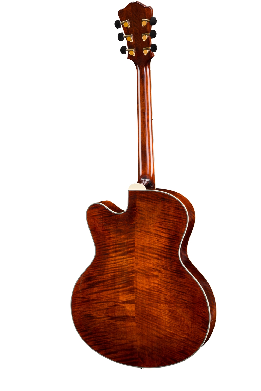 Das Griffbrett aus Ebenholz, die goldene Hardware und die traditionelle Venetian-Cutaway-Form unterstreichen das edle Erscheinungsbild. Der Lollar Custom Wound Imperial Humbucker liefert einen klaren, dynamischen Ton. Geliefert wird die AR810CE in einem robusten Hardshell-Case.