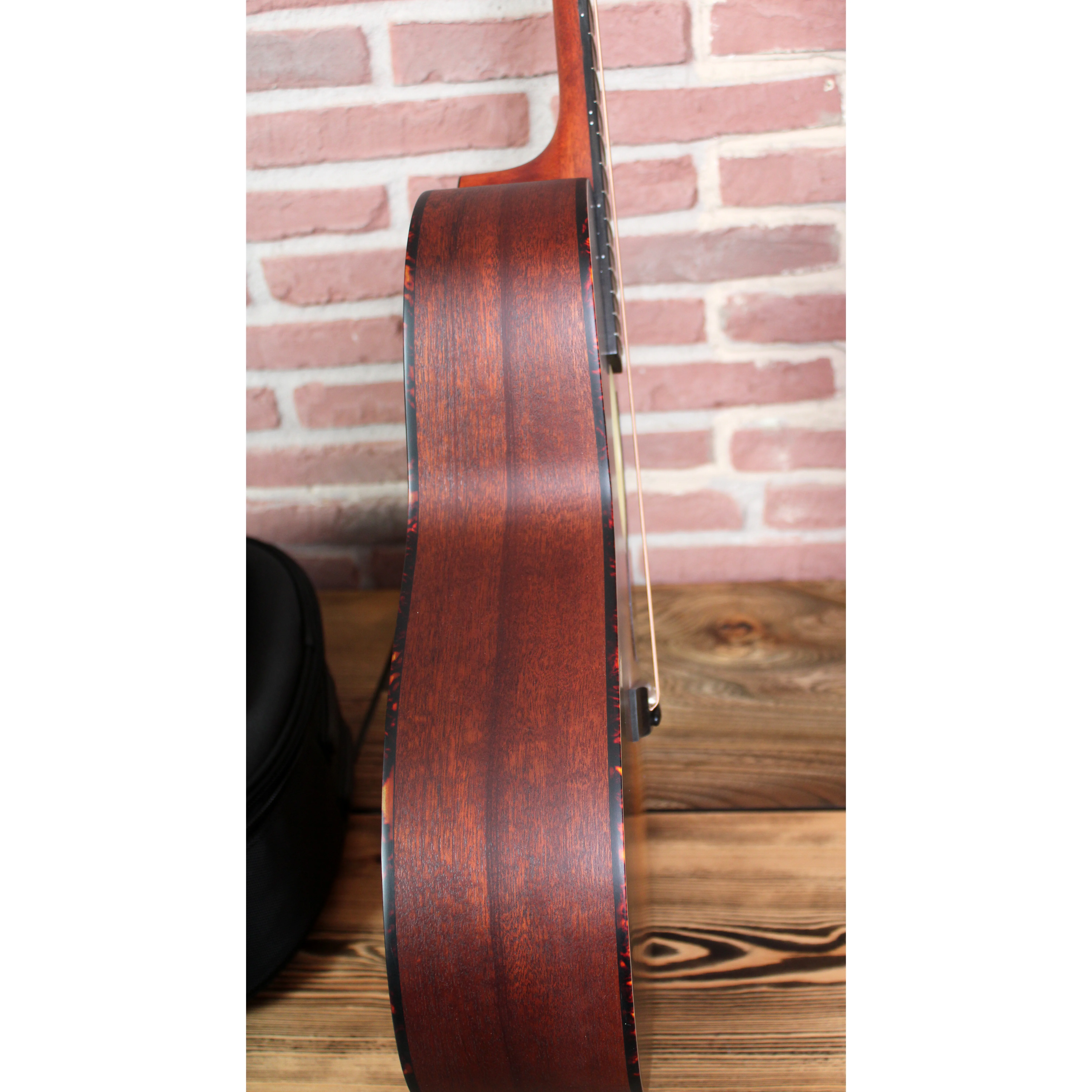 Mit ihrer OO Slope Shoulder Bauform liegt sie angenehm am Körper und liefert dennoch eine überraschend volle Projektion. Die massive Sitka-Fichtendecke in Kombination mit massivem Sapele für Boden und Zargen sorgt für einen ausgewogenen Klang mit brillanten Höhen, kräftigen Mitten und klarer Ansprache, ideal für akustisches Solospiel wie auch Begleitung.
