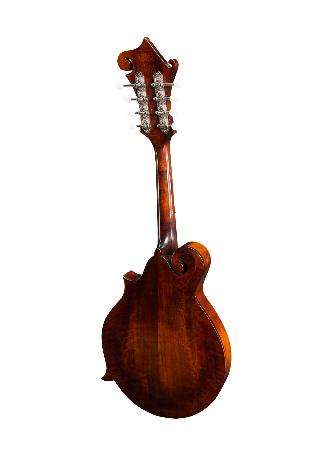 Das Design orientiert sich am klassischen F-Style mit eleganten Linien, feinem Binding und glänzender Lackierung, die das Naturmaterial stilvoll zur Geltung bringt. Der Ahornhals trägt ein Griffbrett aus Ebenholz mit 12″ Radius und 23 sorgfältig eingearbeiteten Bünden – für flüssiges Spiel und präzise Intonation. Der verstellbare Ebenholzsteg sowie das gegossene Aluminium-Tailpiece bieten nicht nur gute Klangbalance, sondern auch stabile Stimmung.