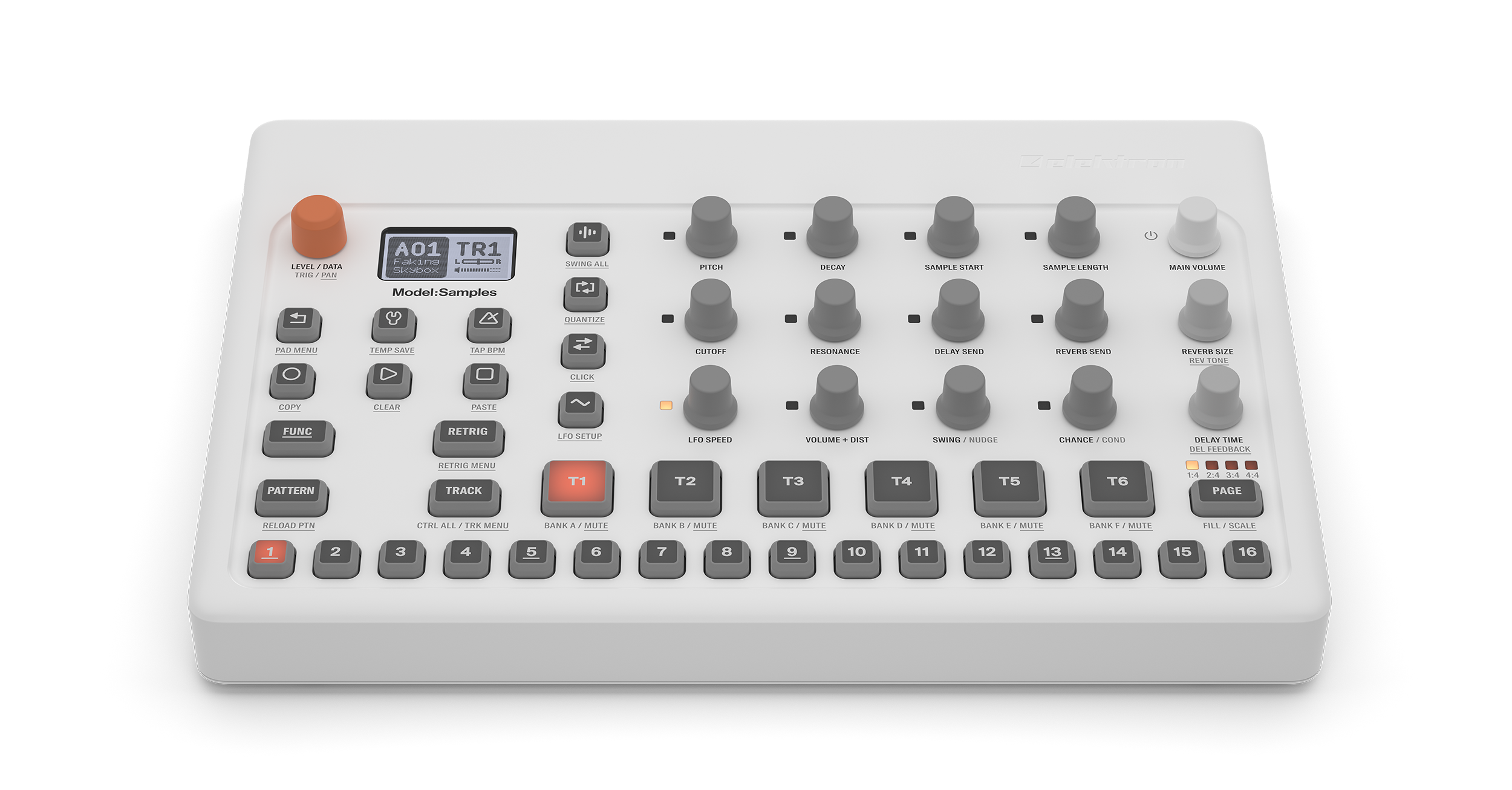 Massiver Sound im kompakten Format. Hier kommt die Sechsspur-Groovebox, die so gut wie alle Elektron-Superkräfte in einem schlanken, leichten und tragbaren Gehäuse vereint. Vollgepackt mit nützlichen Presets und viel Platz für eigene Sounds. Die Bedienelemente sind direkt griffbereit. Ein echtes Plug-and-Play-Vergnügen. Starte direkt ins Musikmachen.