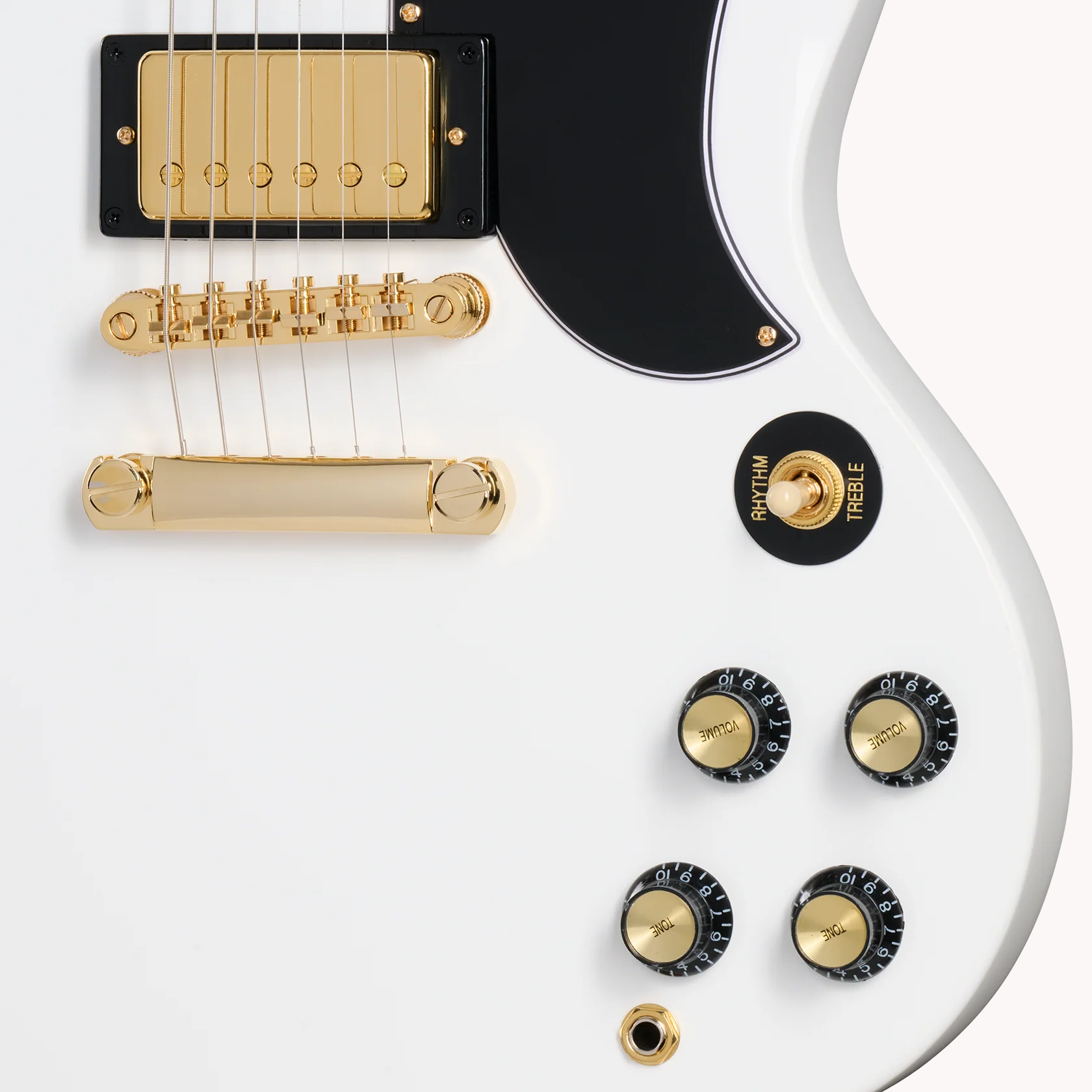 Für den Sound sorgen zwei Epiphone ProBucker™ Custom Humbucker, die den klassischen, Vintage-inspirierten SG-Ton liefern. Jeder Tonabnehmer besitzt eigene Volume- und Tone-Regler, ergänzt durch einen 3-Wege-Toggle-Switch – so lassen sich die Pickups individuell oder kombiniert nutzen, ganz nach Stil und Stimmung.