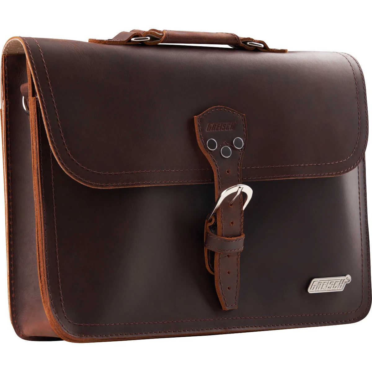 Diese limitierte **Gretsch® Leder-Laptoptasche** ist der ideale Begleiter für Arbeit, Schule oder unterwegs. Sie überzeugt mit einem gebürsteten Aluminium-Logo, einem abnehmbaren Trageriemen und praktischen Innenfächern zur Organisation. Weltweit auf nur 120 Stück limitiert.