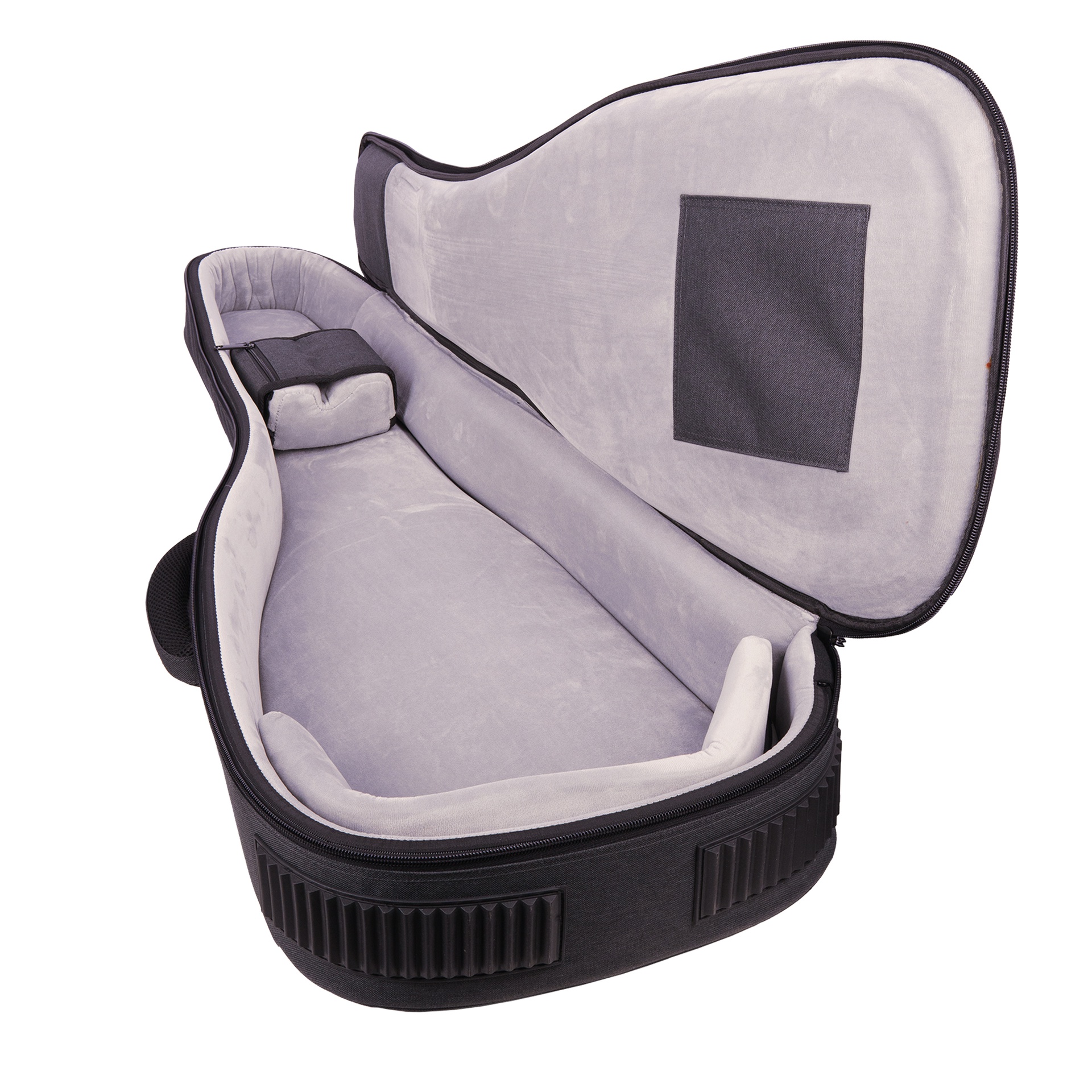 Gefertigt aus strapazierfähigem Textilmaterial schützt das Case zuverlässig vor Stößen, Feuchtigkeit und Kratzern. Innen sorgt eine großzügige 30 mm Polsterung in Kombination mit edlem Samtfutter dafür, dass dein Instrument weich und sicher eingebettet ist – perfekt für täglichen Transport oder längere Reisen.