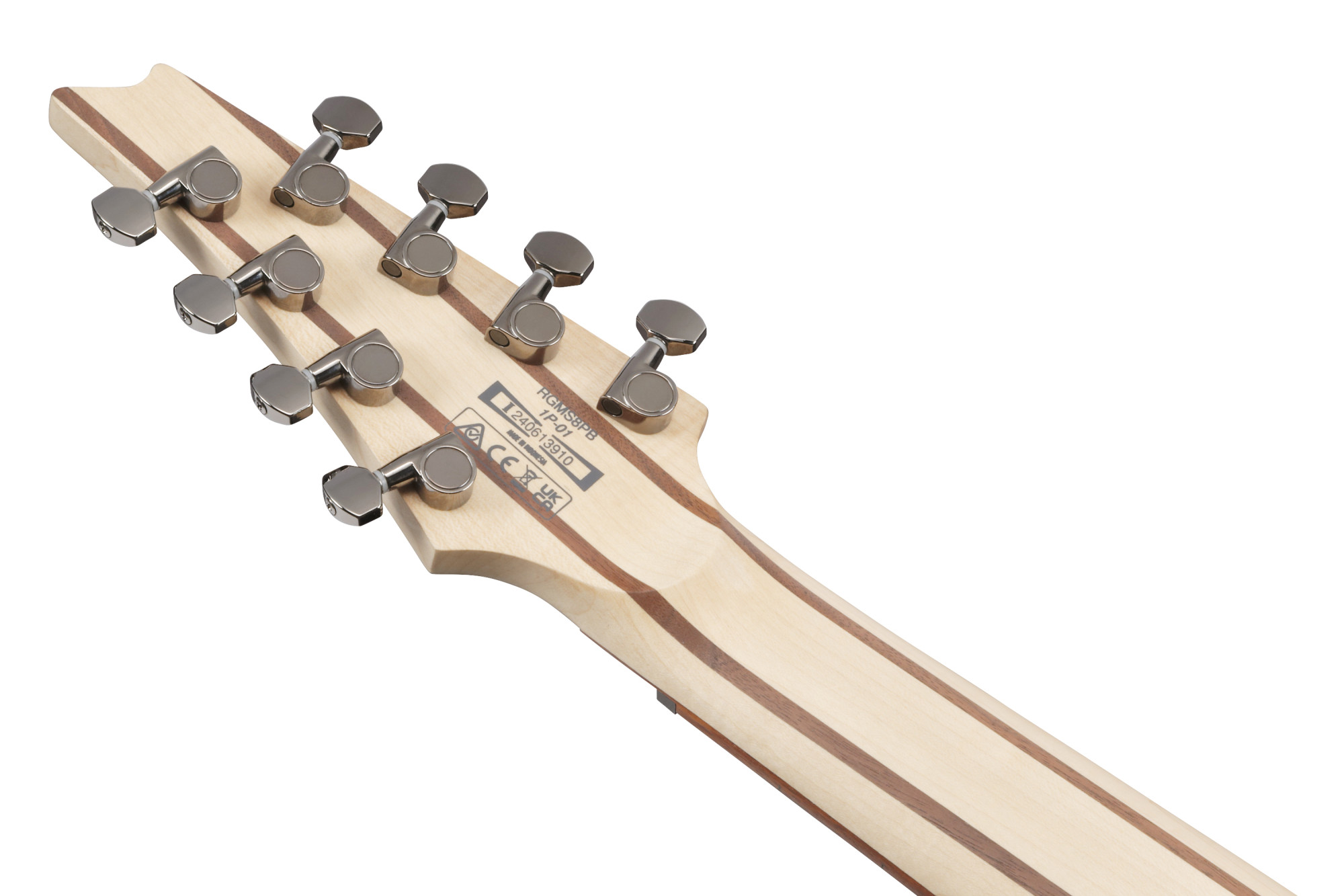 Die RGMS8PB verfügt über einen Wizard III 5-teiligen Ahorn/Walnuss Hals, ein Jatoba Griffbrett und eine Maserpappel Decke auf einen Nyatoh Korpus. Außerdem ist die Gitarre mit Array 8 MS Tonabnehmern und einem Mono-rail Steg ausgestattet.