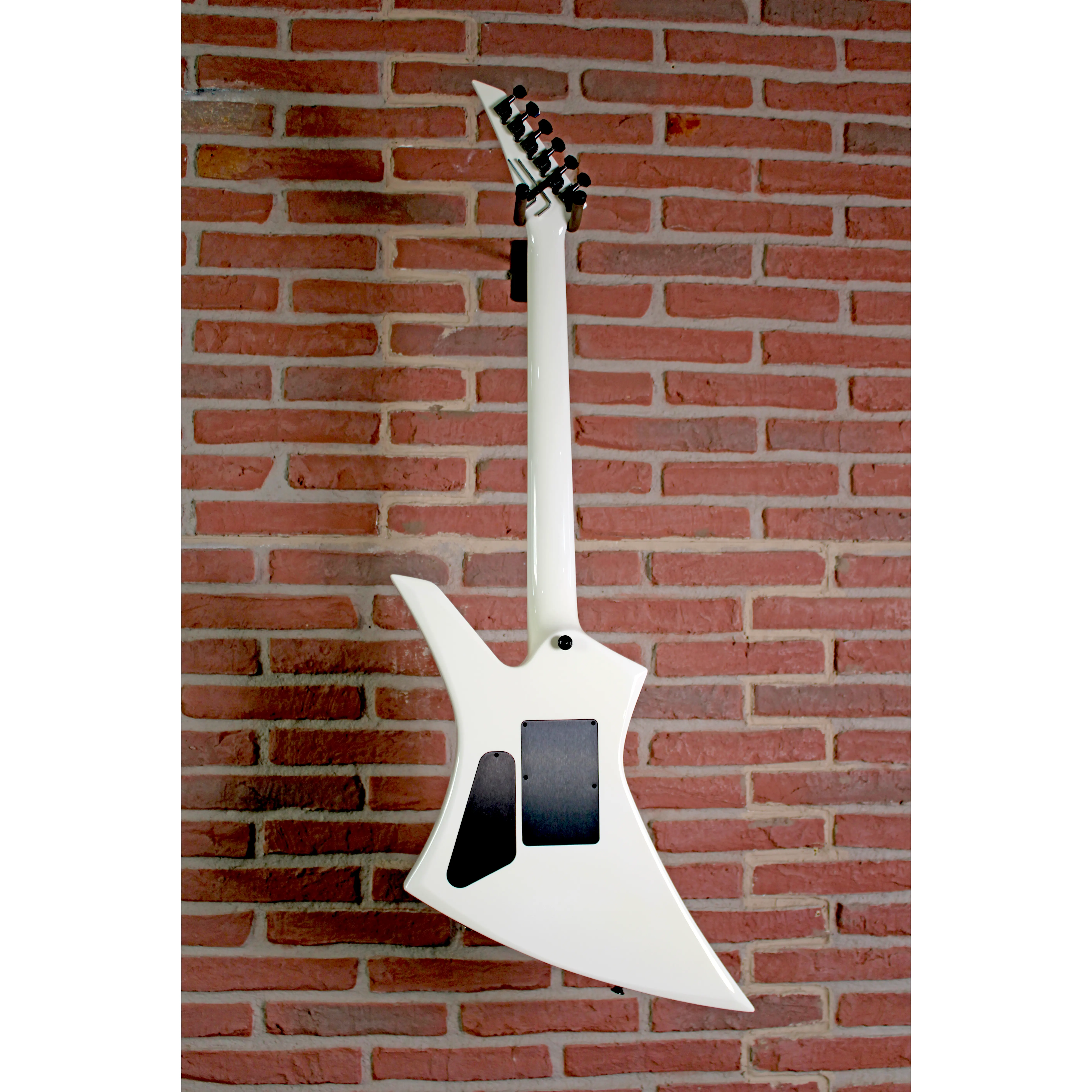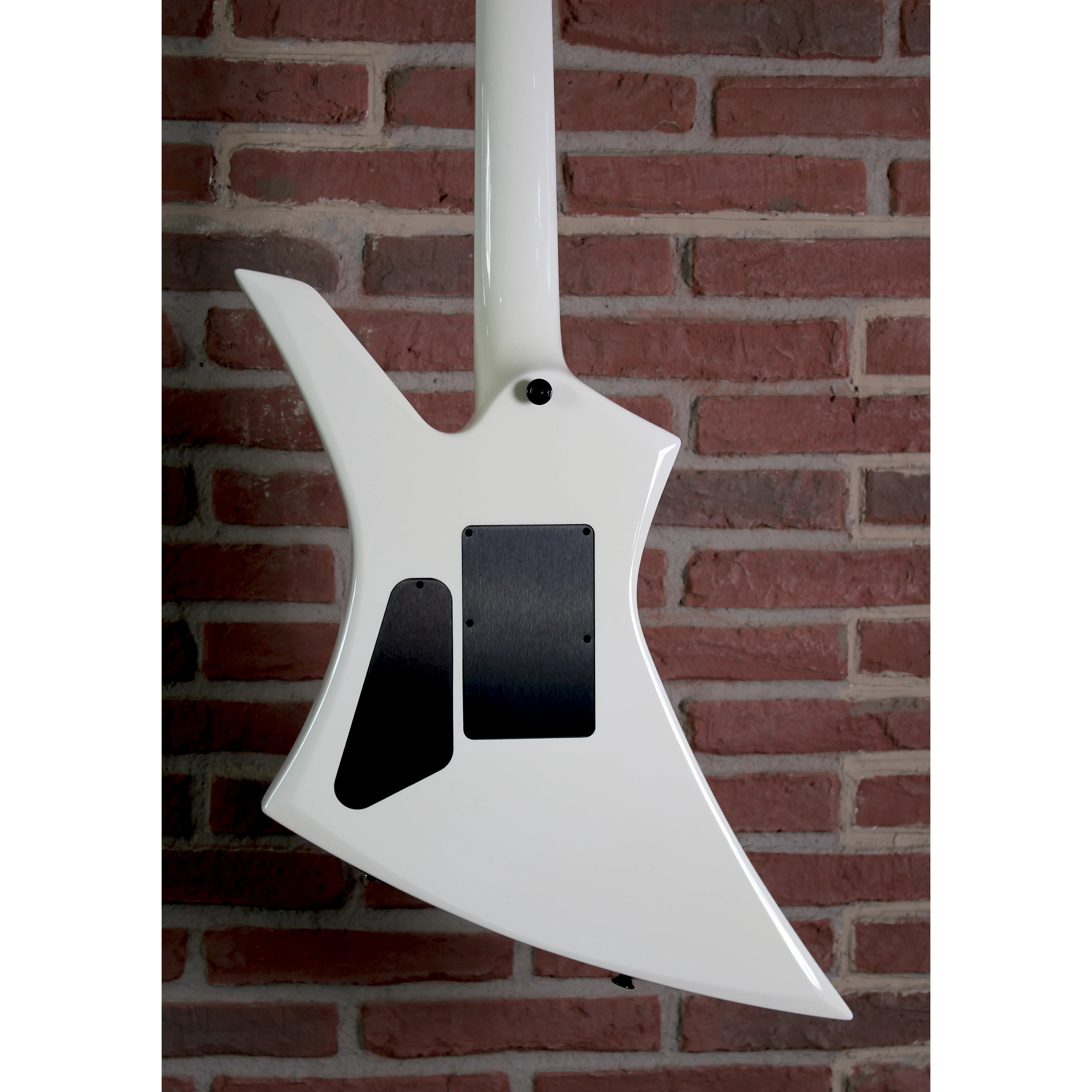 Der markante Kelly-Korpus im klassischen Snow-White-Finish zieht alle Blicke auf sich und sorgt in Kombination mit der scharfen Kontur für eine unverwechselbare Optik. Das leichte, resonante Erlenholz liefert eine klare, durchsetzungsstarke Basis für moderne Metal- und Hardrock-Sounds. Der durchgehende Ahornhals mit Ebenholzgriffbrett bietet maximale Stabilität, schnelle Ansprache und ein extrem flüssiges Spielgefühl – perfekt für Soli und schnelle Riffs.