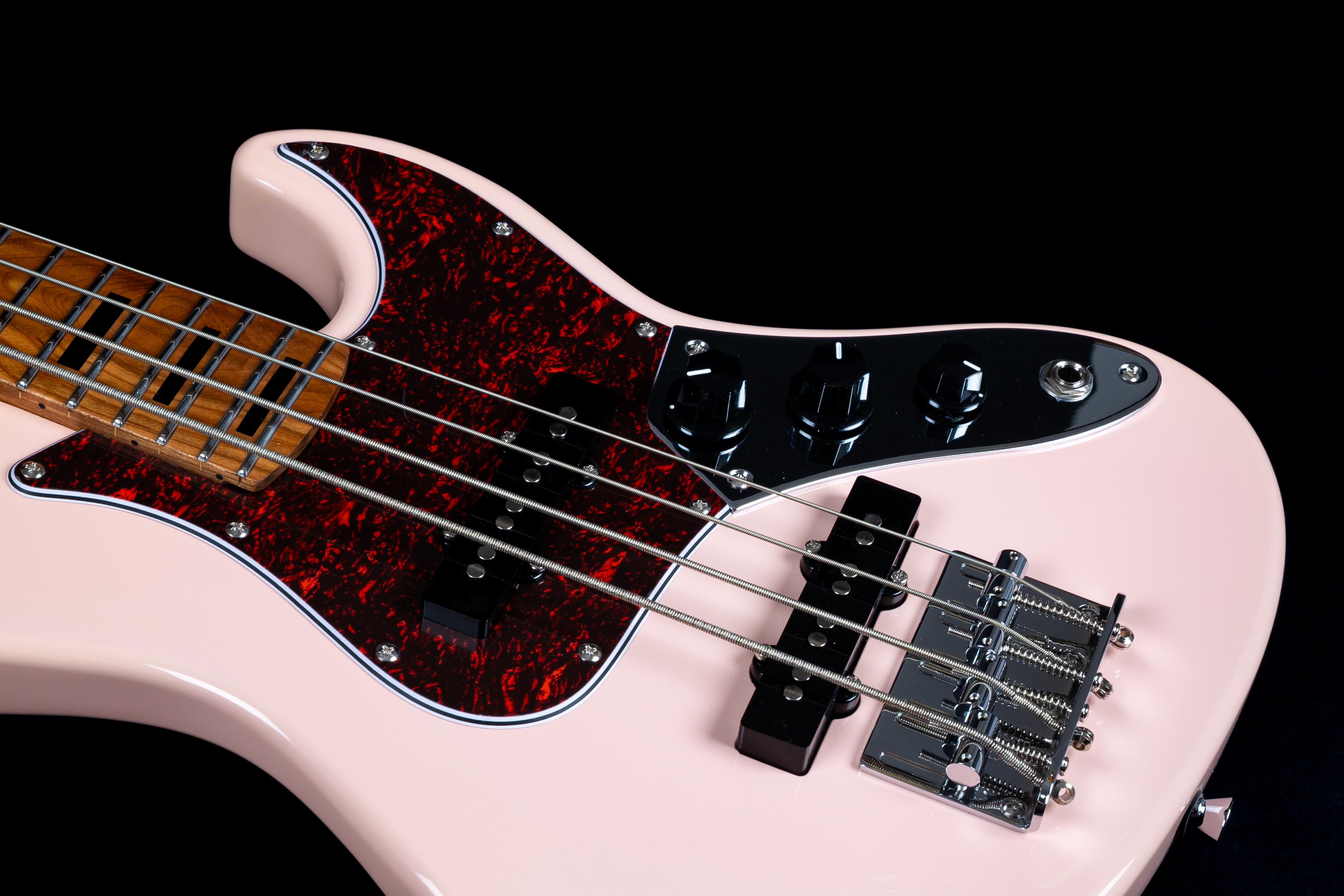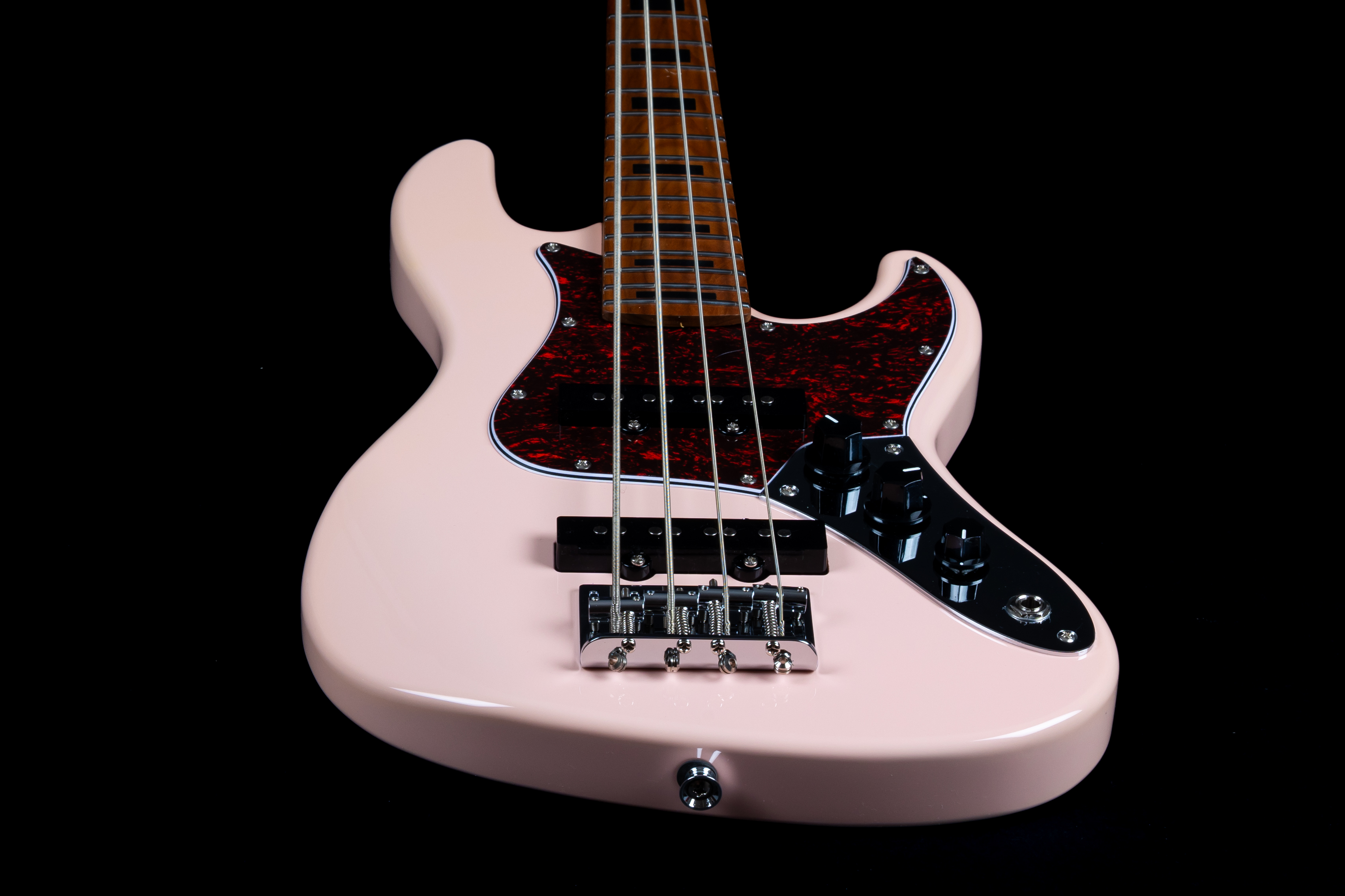 Der Jet Guitars JB‑300 Travel Bass Pink ist ein kompakter, stylischer Kurzskalen-Bass, der klassische Jazz-Bass-Qualitäten in ein handliches Format packt – ideal für unterwegs, kleinere Bühnen oder das Übungskeller-Setup. Sein auffälliges Pink-Finish trifft optisch ins Schwarze, während Holzwahl, Hardware und Elektronik solide Basis für guten Klang liefern.