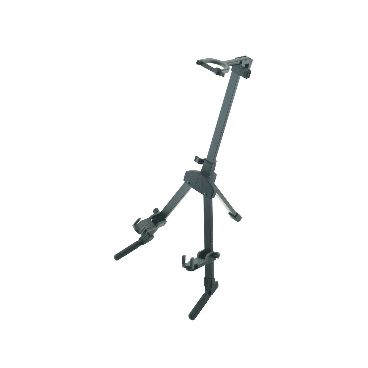 Kompakter, standfester Violinenständer aus Aluminium. Die höhenverstellbaren Instrumentenauflagen können verschiedenen Violinengrößen angepasst werden. Zum Schutz des Instruments sind die Auflagen mit weichem Kunststoff ausgekleidet. Höhenverstellung mittels griffigem Klemmhebel. Der obere Haltebügel kann mit einem zusätzlichen Sicherheitsverschluss verriegelt werden. Mit integriertem Bogenhalter.Zusammengelegt 350 x 110 x 70 mm. Lieferung in schwarzem Nylonbeutel. Gewicht: 0,55 kg, H: 360/570 mm