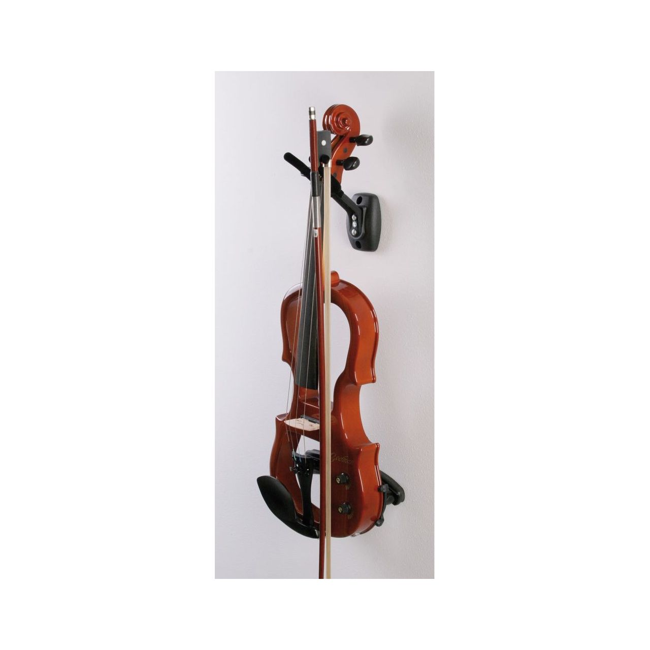 Nach dem Instrumentenkoffer ist der neue König&Meyer Wandhalter die sicherste Lösung zur Aufbewahrung Ihrer Violine. Die Violine wird am gewölbten Ende des Wirbelkastens aufgenommen, dadurch wird das unbeabsichtigte Verstellen der Wirbel verhindert. Der Wandhalter ist so bemessen, dass auch das Einhängen mit angesetztem Schulterpolster problemlos funktioniert. Dank des seitlich integrierten Bogenhalters sind Violine und Bogen immer komfortabel und griffbereit aufgehoben. Der strapazierfähige Flocküberzug schont die Violine optimal.