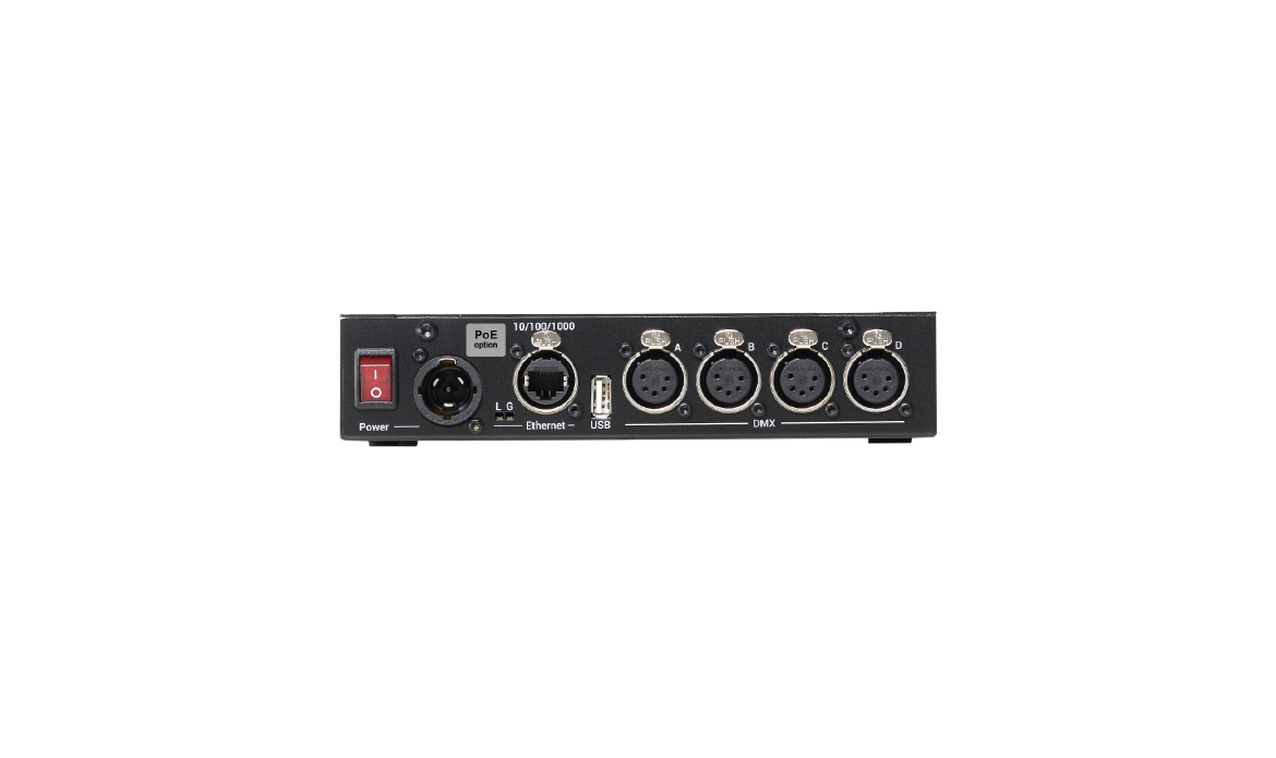 Der grandMA3 onPC 4Port Node 4k PoE wird in einem 9,5“ 1HE Gehäuse geliefert und ist für die synchrone Ausgabe von vier DMX-Universen in jedem grandMA3 System ausgelegt. Um eine optimale Leistung zu gewährleisten, ist der Node mit einem Hochleistungsprozessor und einer 1 Gb/s Ethernet-Verbindung ausgestattet, die eine zuverlässige und stabile Umwandlung von Ethernet zu DMX (und umgekehrt) garantiert. Er kann vollständig über PoE (Power over Ethernet) mit Strom versorgt werden, um zusätzliche Verkabelung zu vermeiden. Eine große Auswahl an Zubehör ermöglicht bei Bedarf alternative Befestigungsmethoden und kundenspezifische Anpassungen.