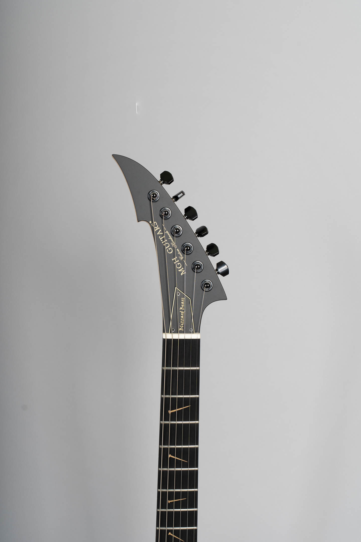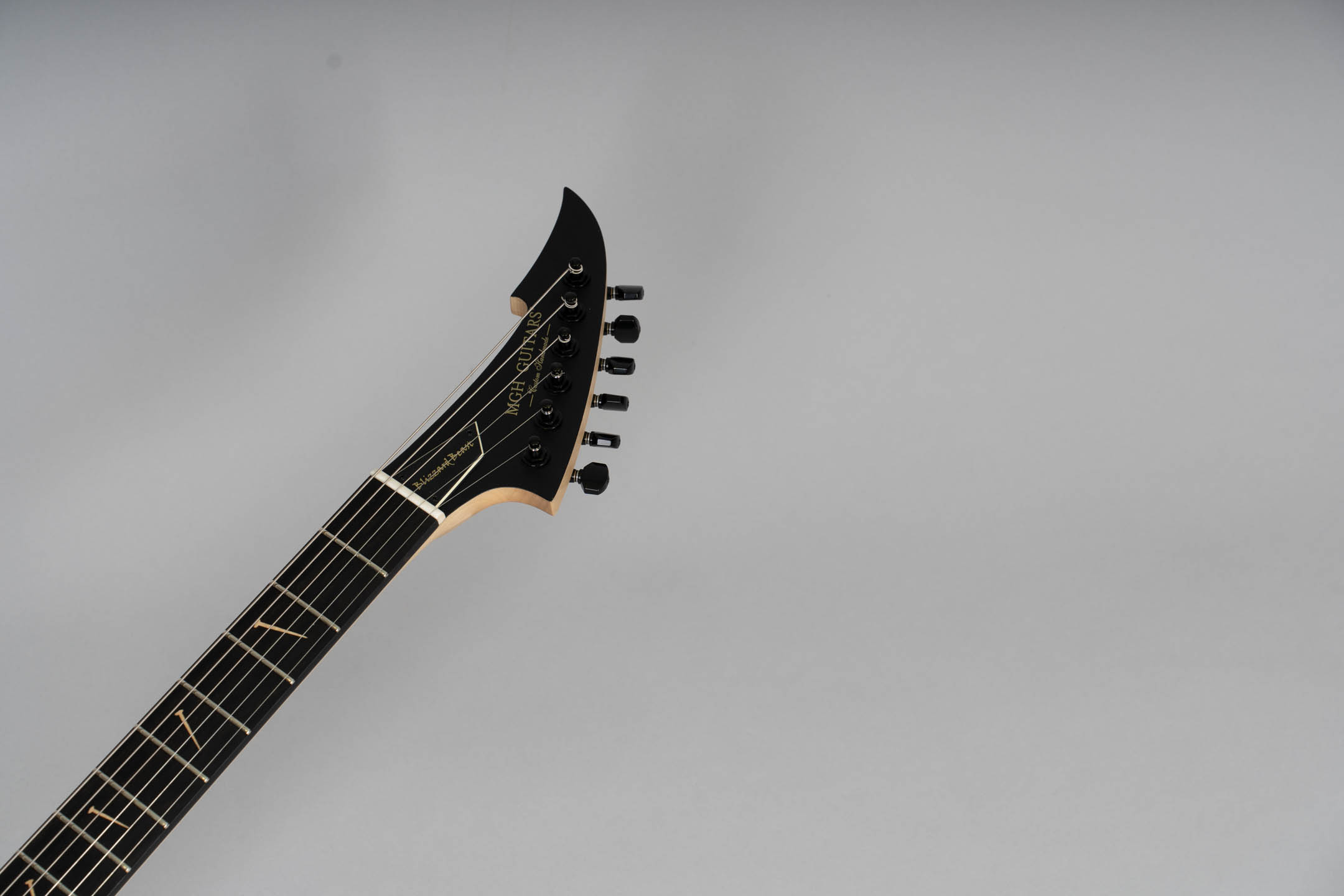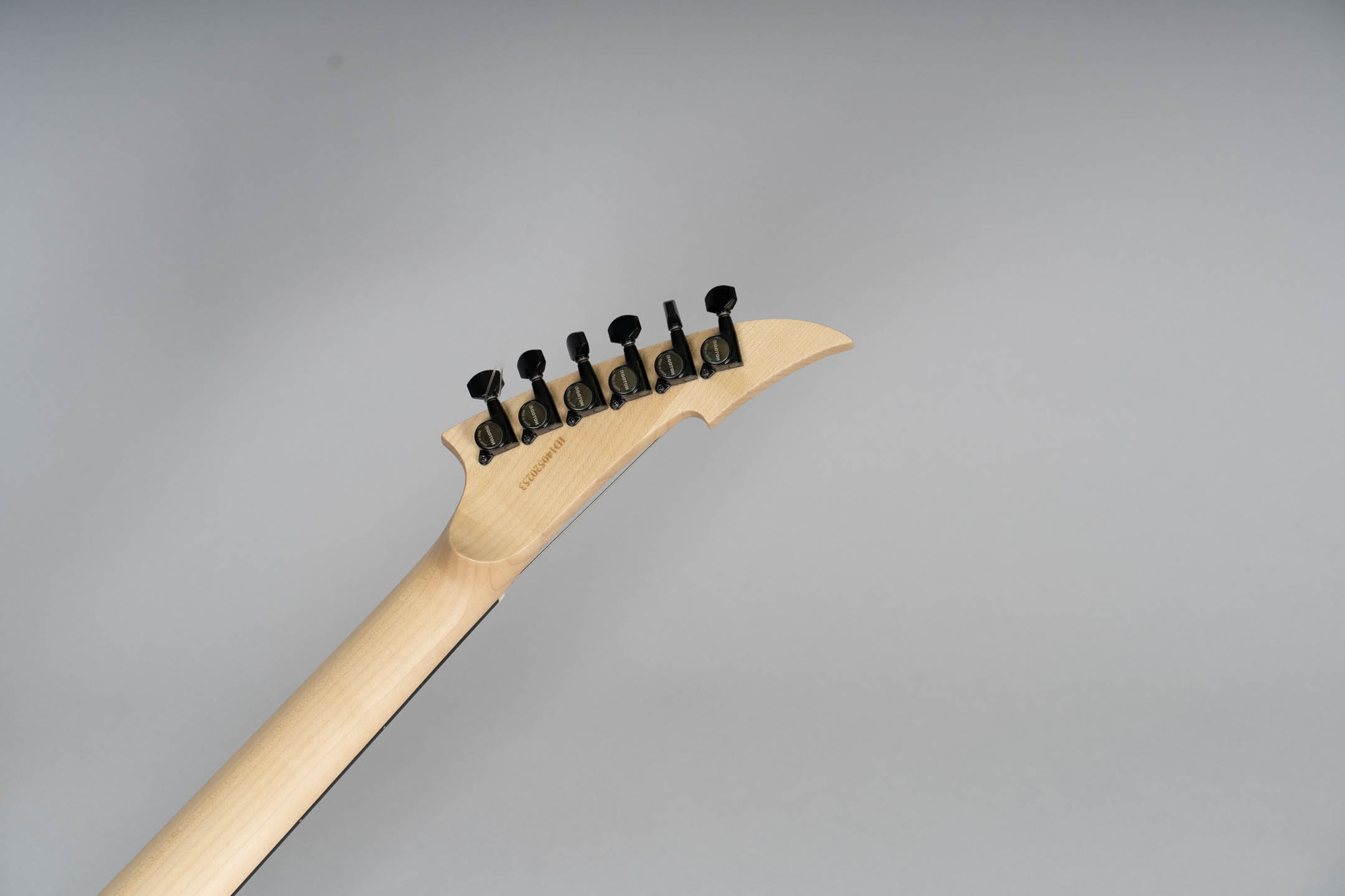 Das Ebenholzgriffbrett mit den unverwechselbaren Skull’n’Nails-Inlays und 2 mm weißen Side Dots bietet ein edles Spielgefühl und eine klare visuelle Führung auf der Bühne. Ausgestattet mit einem MGH-7TB Humbucker an der Brücke und einem MGH-5N am Hals, deckt die Blizzard Beast ein breites Spektrum von bissigen High-Gain-Sounds bis hin zu warmen Cleans ab – direkt, definiert und durchsetzungsfähig. Die reduzierte Reglerführung mit nur einem Volume-Poti und einem 3-Wege-Toggle hält den Fokus auf das Wesentliche: Performance.