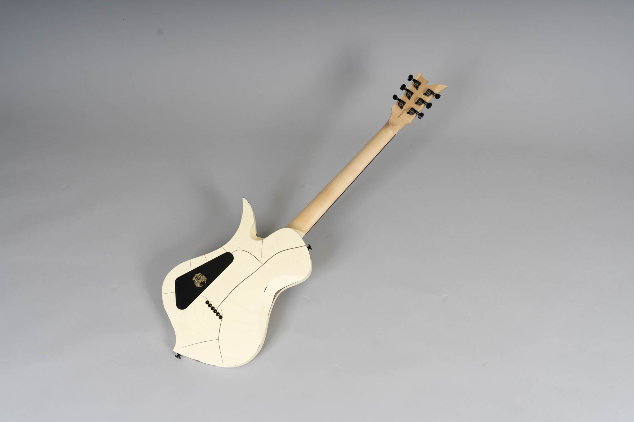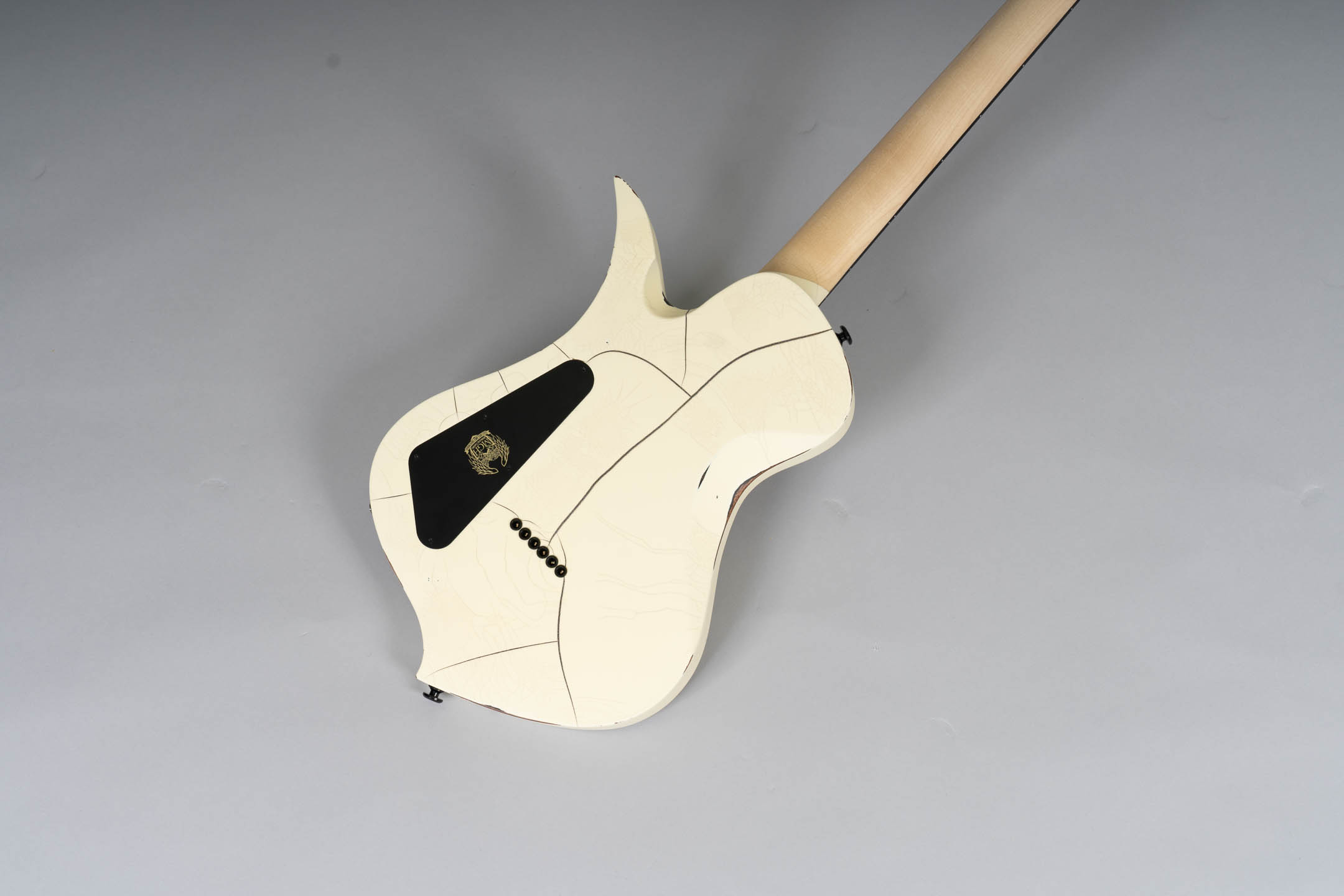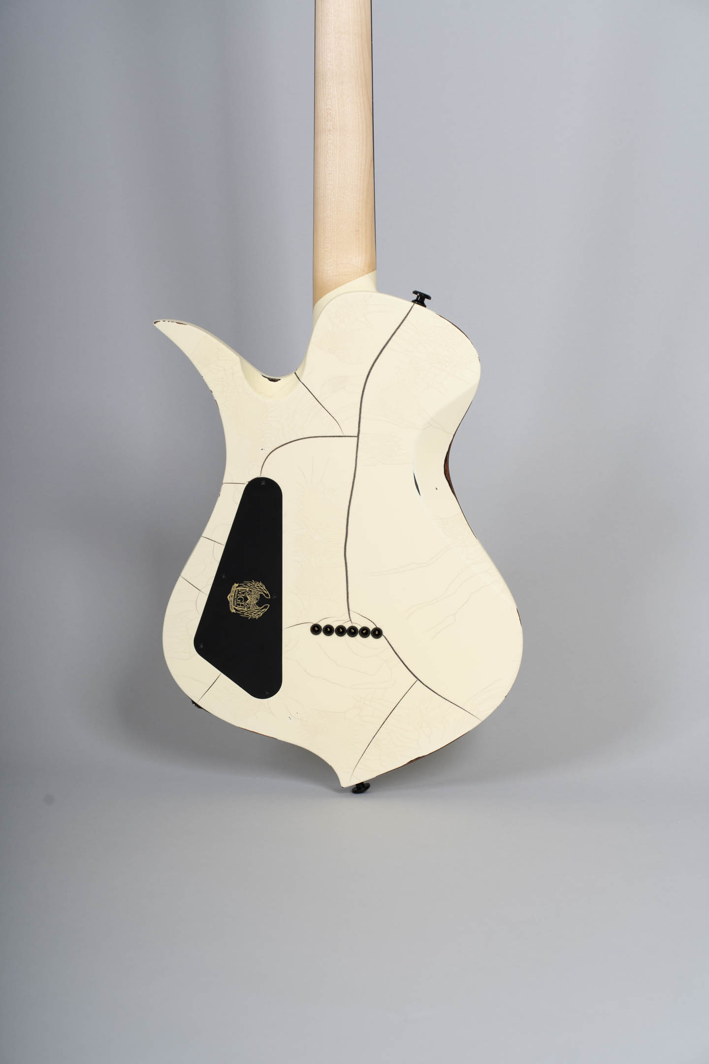 Die MGH-Guitars Ellevar vereint modernes Metal-Design mit traditionellem Singlecut-Charakter und liefert dabei kompromisslosen Ton, makellose Verarbeitung und ein auffälliges Erscheinungsbild. Die außergewöhnliche Korpusform kombiniert klassische Eleganz mit aggressiver Linienführung – perfekt in Szene gesetzt durch das Cracked White Finish mit blutroten Splatter-Akzenten. Die Ellevar ist ein Instrument für Spieler*innen, die in jeder Hinsicht auffallen wollen – optisch wie klanglich.