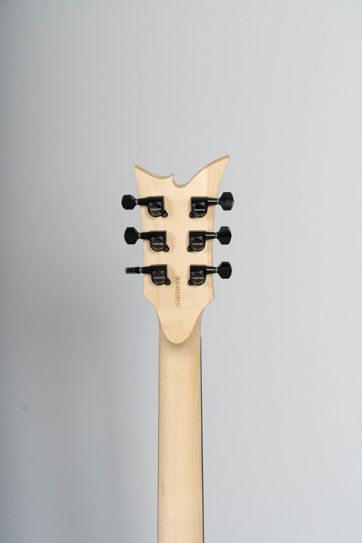 Im Inneren sorgen ausgesuchte Tonhölzer für Substanz und Klangfülle: Der Mahagonikorpus mit Ahorndecke erzeugt warme Mitten und ein sattes Fundament, das hervorragend mit dem brillanten Attack des Ahornhalses (Set-In) harmoniert. Das Ebenholzgriffbrett ist nicht nur besonders haltbar und spielfreudig, sondern trägt mit den Skull’n’Nails-Inlays auch die unverwechselbare Handschrift der MGH-Serie.