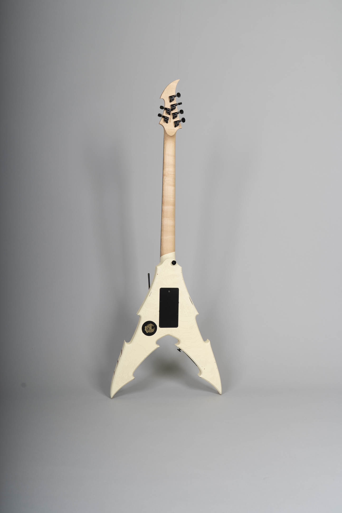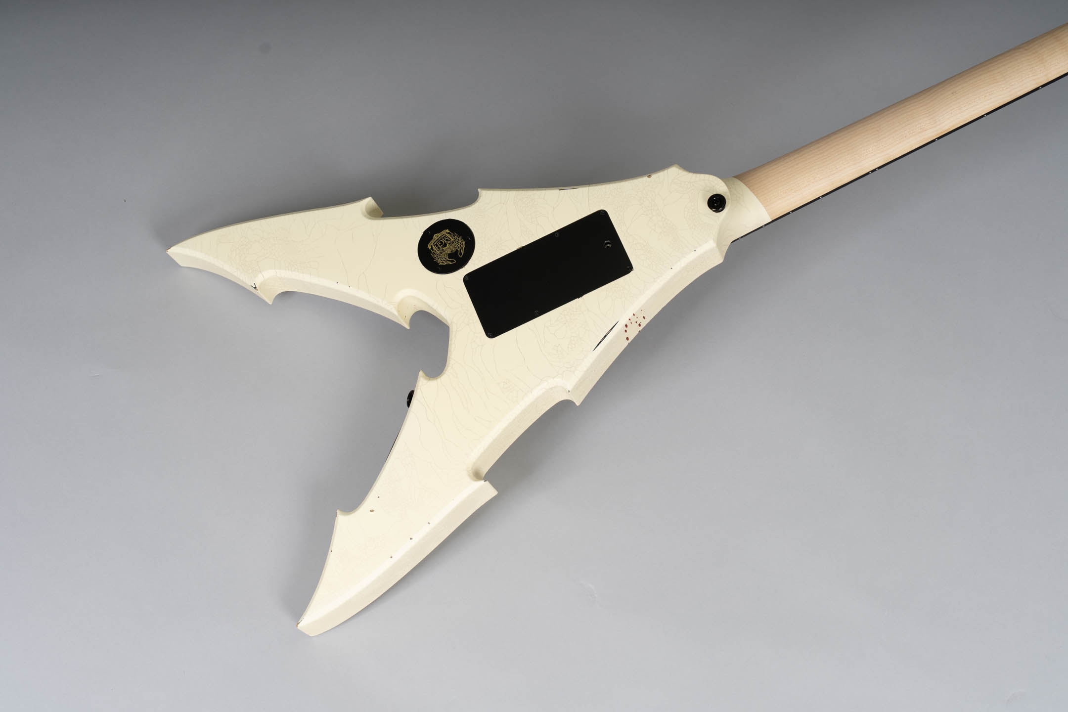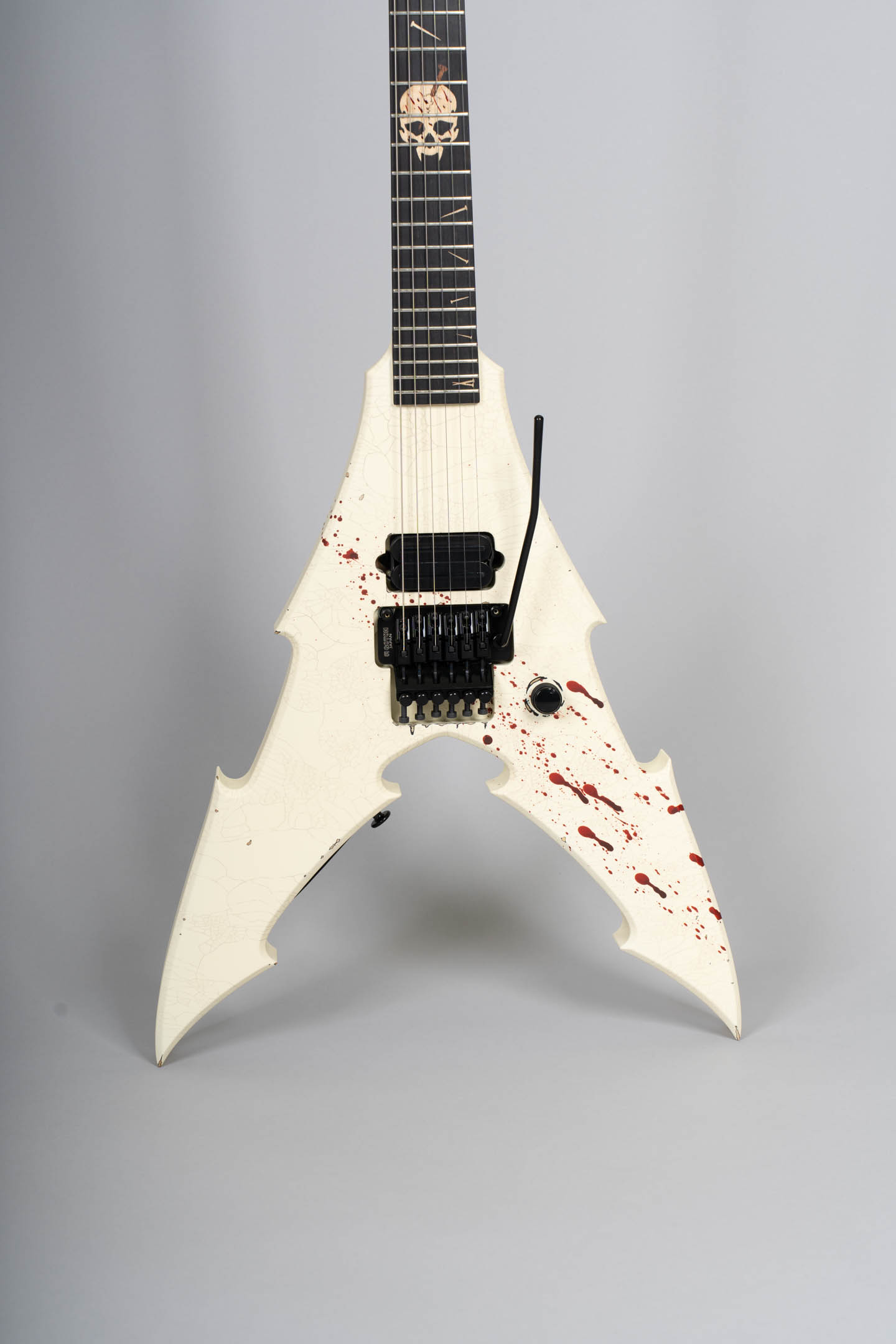 Die MGH-Guitars Warg ist eine echte Kriegsmaschine im Gitarrenformat – extrem im Look, kompromisslos in der Ausstattung und gnadenlos im Sound. Mit ihrer massiven, kantigen V-Shape und dem düsteren Cracked-White-Finish samt blutroter Splatter-Grafik ist sie alles andere als dezent. Die Warg ist für Metalheads gebaut, die auf kompromisslose Optik und maximale Performance setzen – auf der Bühne, im Studio oder im Proberaum.