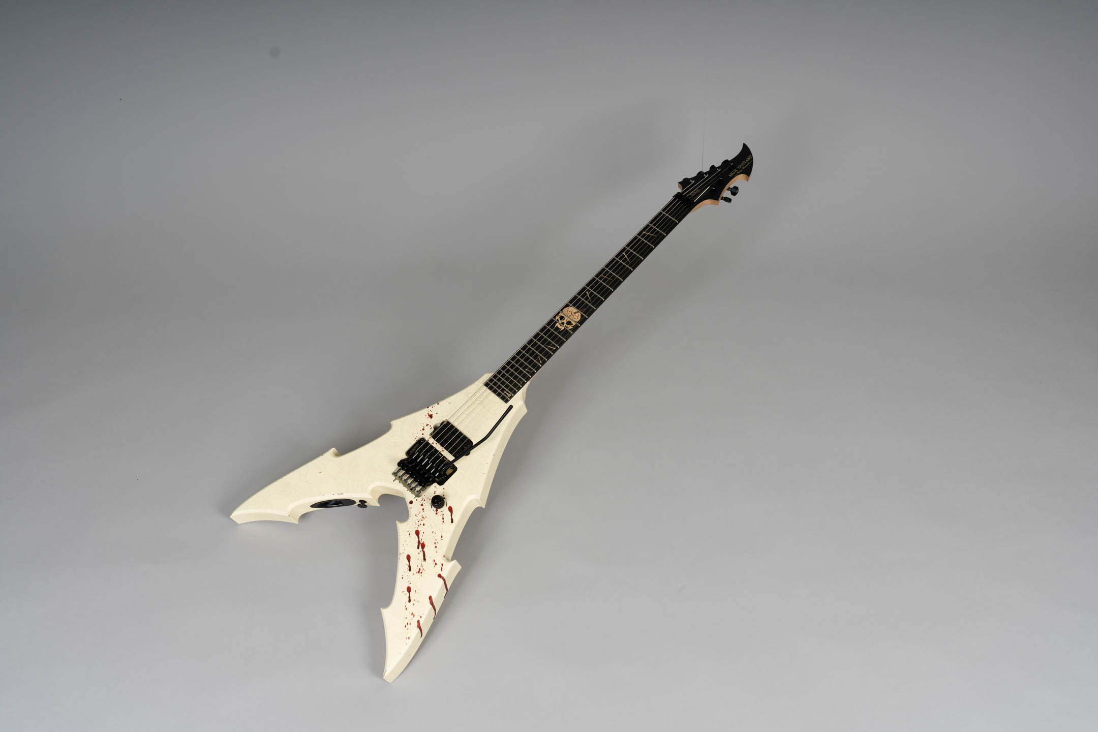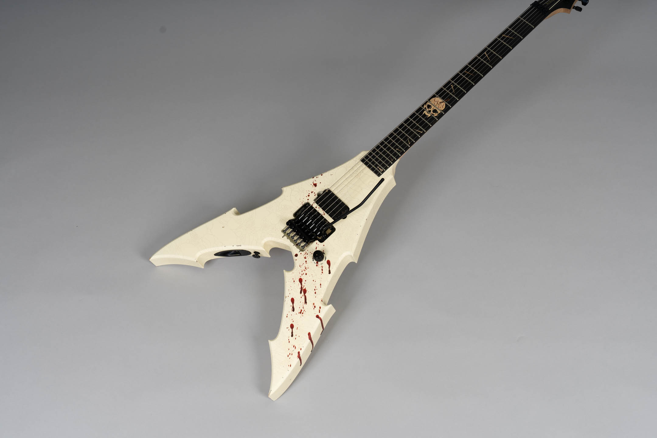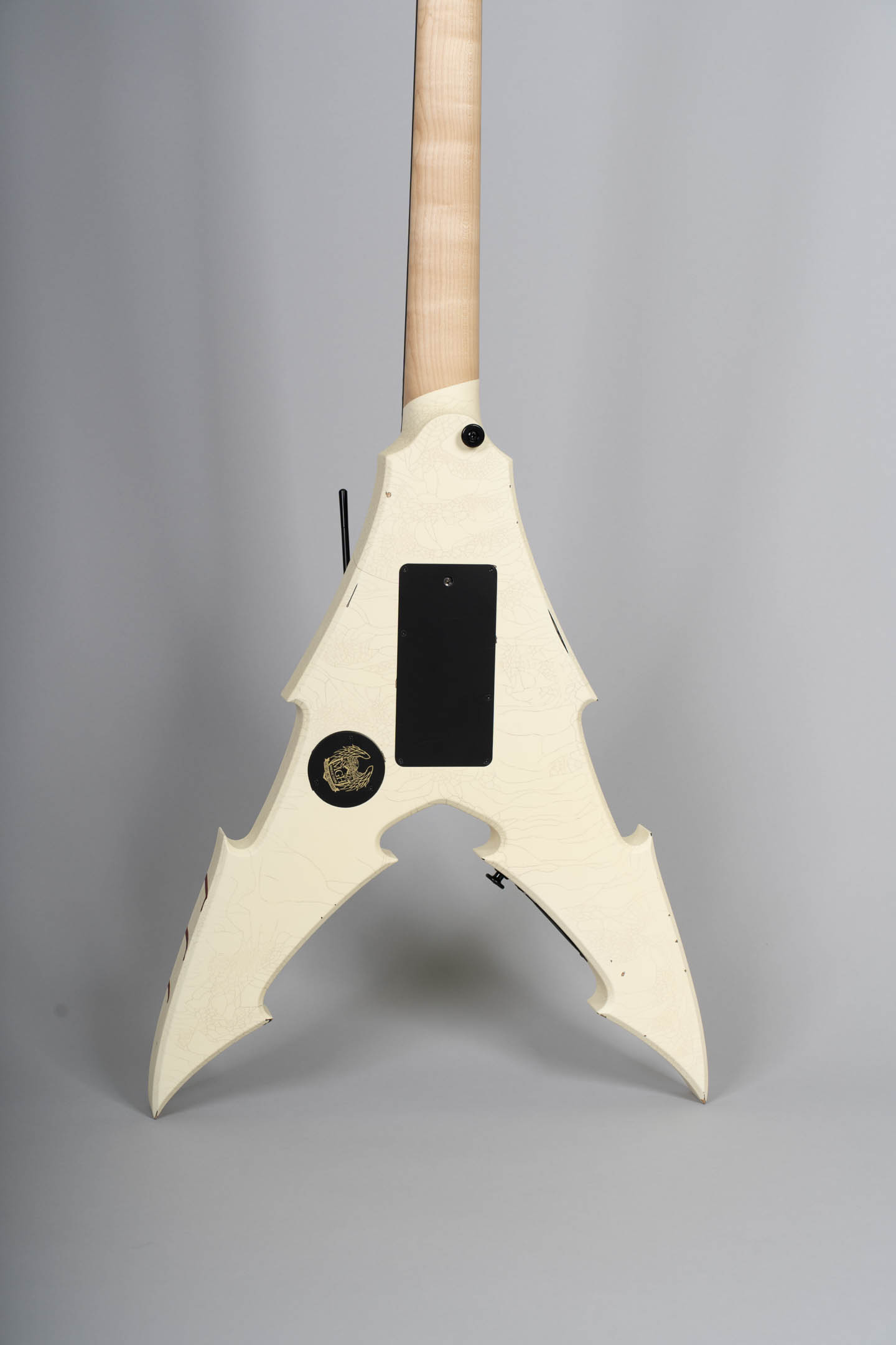 Die MGH-Guitars Warg ist eine echte Kriegsmaschine im Gitarrenformat – extrem im Look, kompromisslos in der Ausstattung und gnadenlos im Sound. Mit ihrer massiven, kantigen V-Shape und dem düsteren Cracked-White-Finish samt blutroter Splatter-Grafik ist sie alles andere als dezent. Die Warg ist für Metalheads gebaut, die auf kompromisslose Optik und maximale Performance setzen – auf der Bühne, im Studio oder im Proberaum.