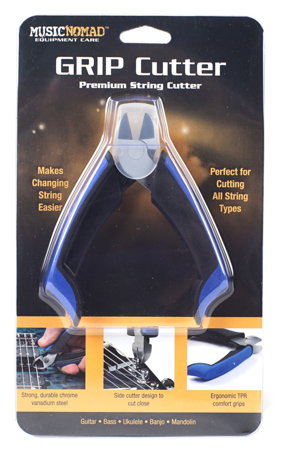 - - seitliches Klingen-Design schneidet Saiten bündig an den Mechaniken