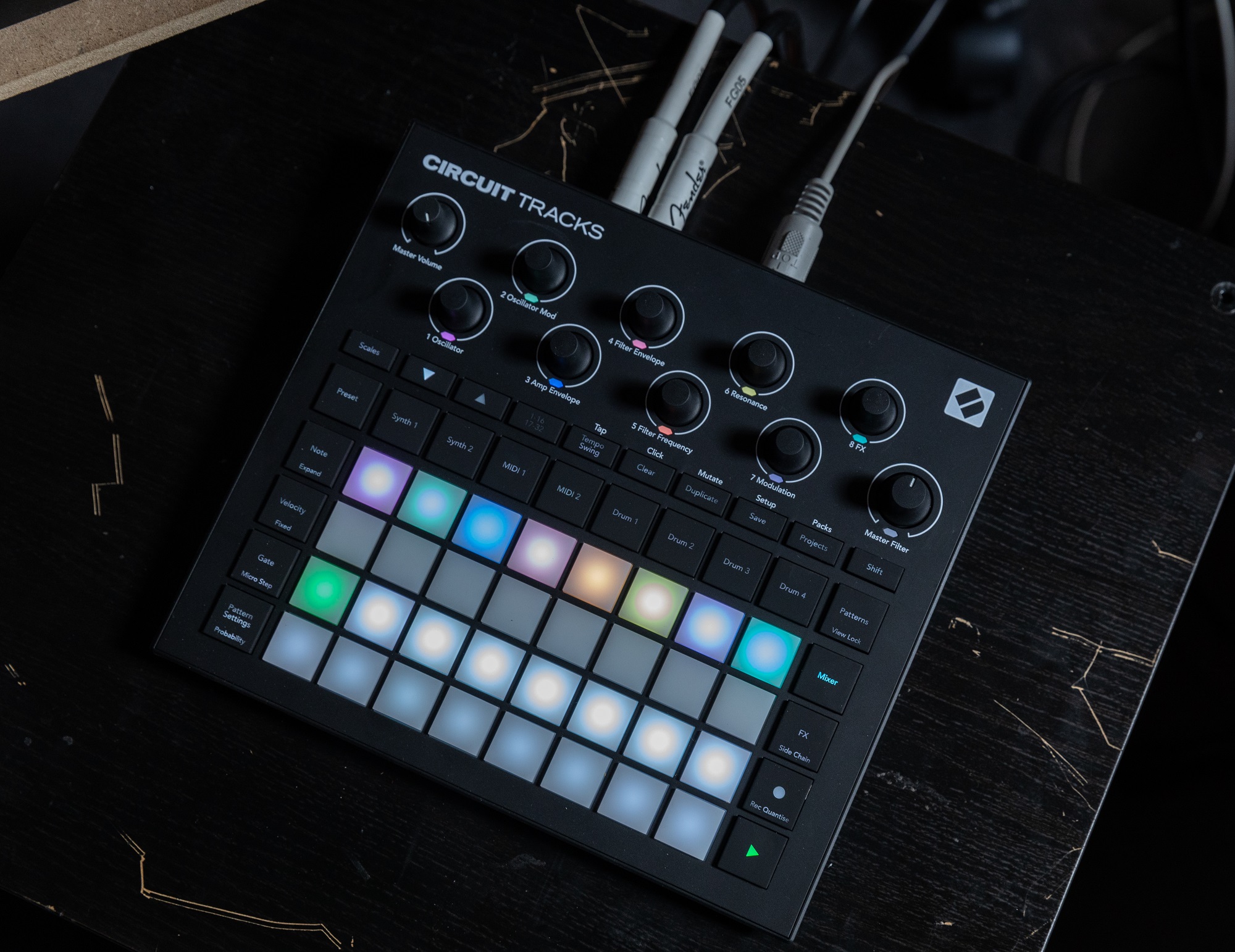 - Lieferumfang: Circuit Tracks, USB-C-Kabel, MIDI-Adapterkabel (3x), Netzteil