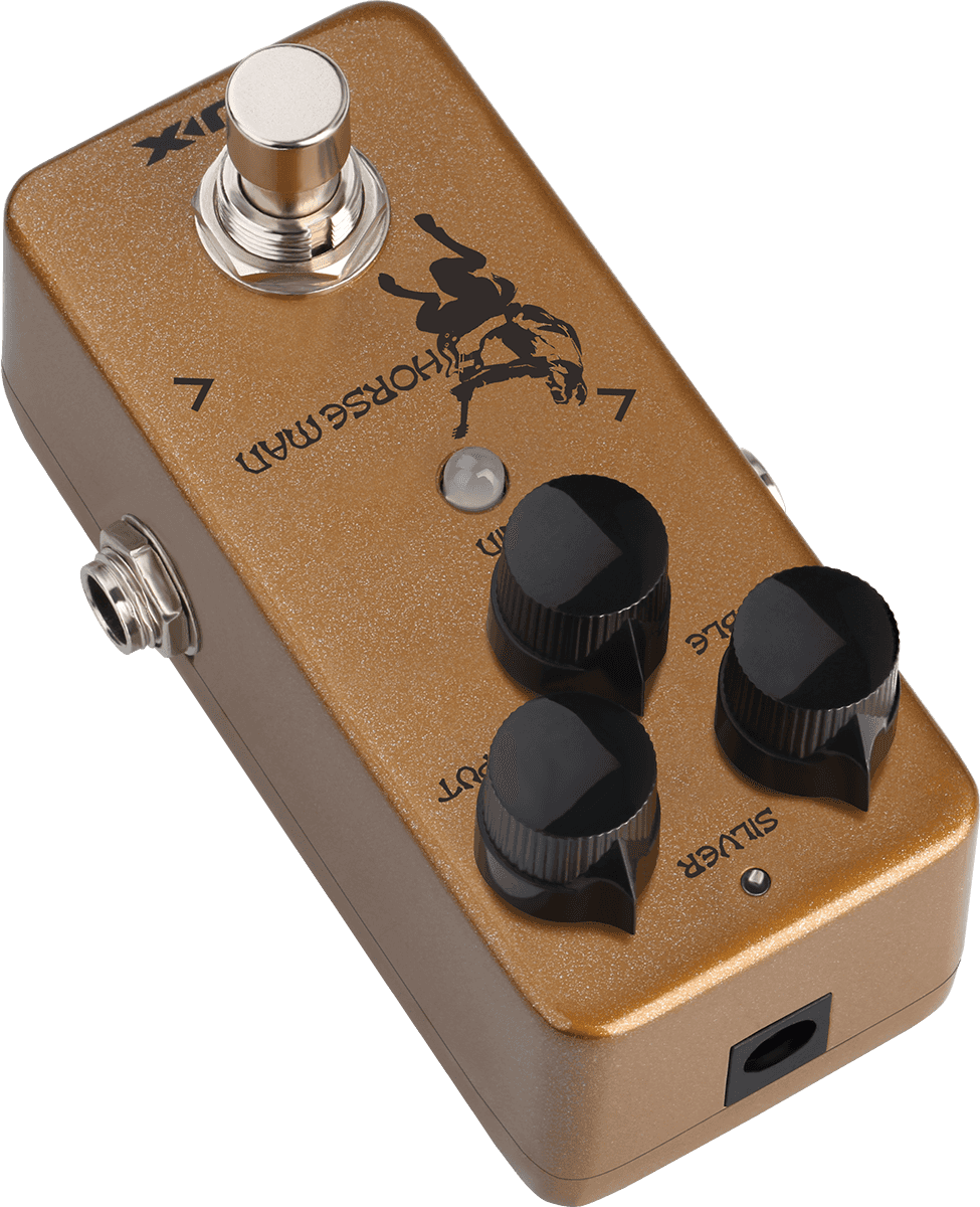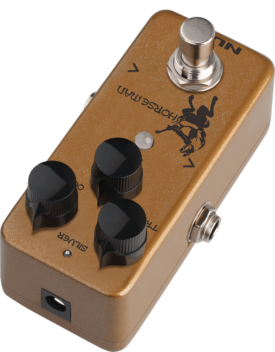 Eines der begehrtesten Dual-Overdrive-Pedale aller Zeiten gibt es jetzt im Hosemtaschenformat. Der NUX Horseman ist eine Hommage an das legendäre Centaur-Pedal. Es besitzt drei Drehregler für die Grundeinstellungen (Gain, Treble, Output) und zwei Modi: Gold und Silver, und es bietet massiven Vorwärtsdrang, der normalerweise einen 18-V-Eingang erfordert.