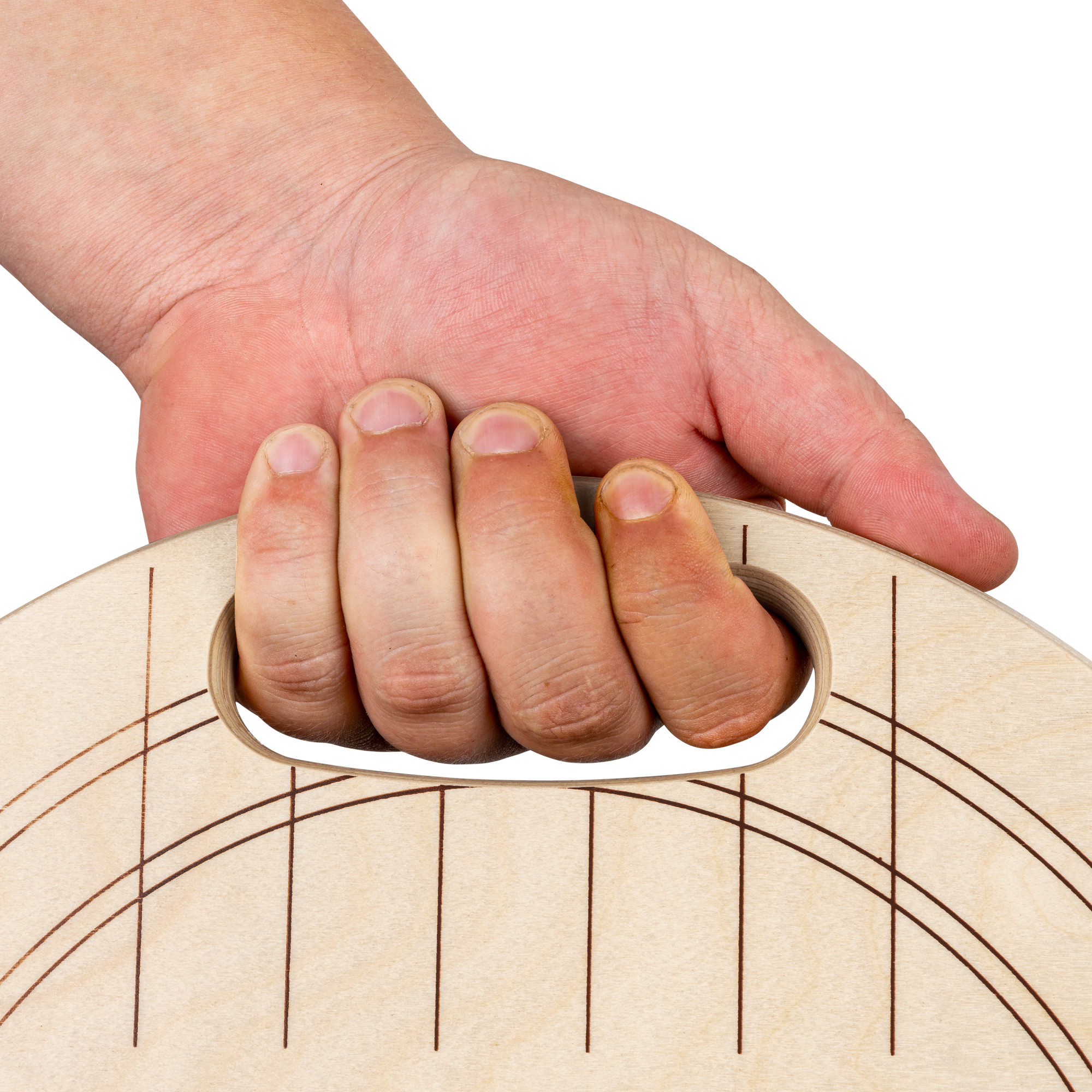 Massivholz-Barhocker mit Ortega-Schalllochdesign und komfortablem Tragegriff. In drei Größen erhältlich