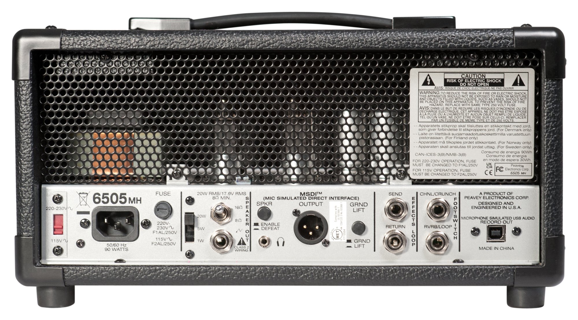 Mit zwei Kanälen (Lead & Rhythm), jeweils mit Gain-, Volume- und Bright-/Crunch-Schaltern, bietet der 6505 MH eine breite Palette an High-Gain-Sounds – von tightem Rhythmus bis zu singenden Soli. Die Rückseite überzeugt mit durchdachten Features: ein leistungsreduzierbarer Endstufen-Schalter (20W, 5W, 1W), XLR-Direct-Out mit Cab-Simulation (MSDI™), Effektloop, USB-Audio-Out sowie T.S.I.-Röhrenüberwachung für maximale Sicherheit und Wartungsfreundlichkeit.