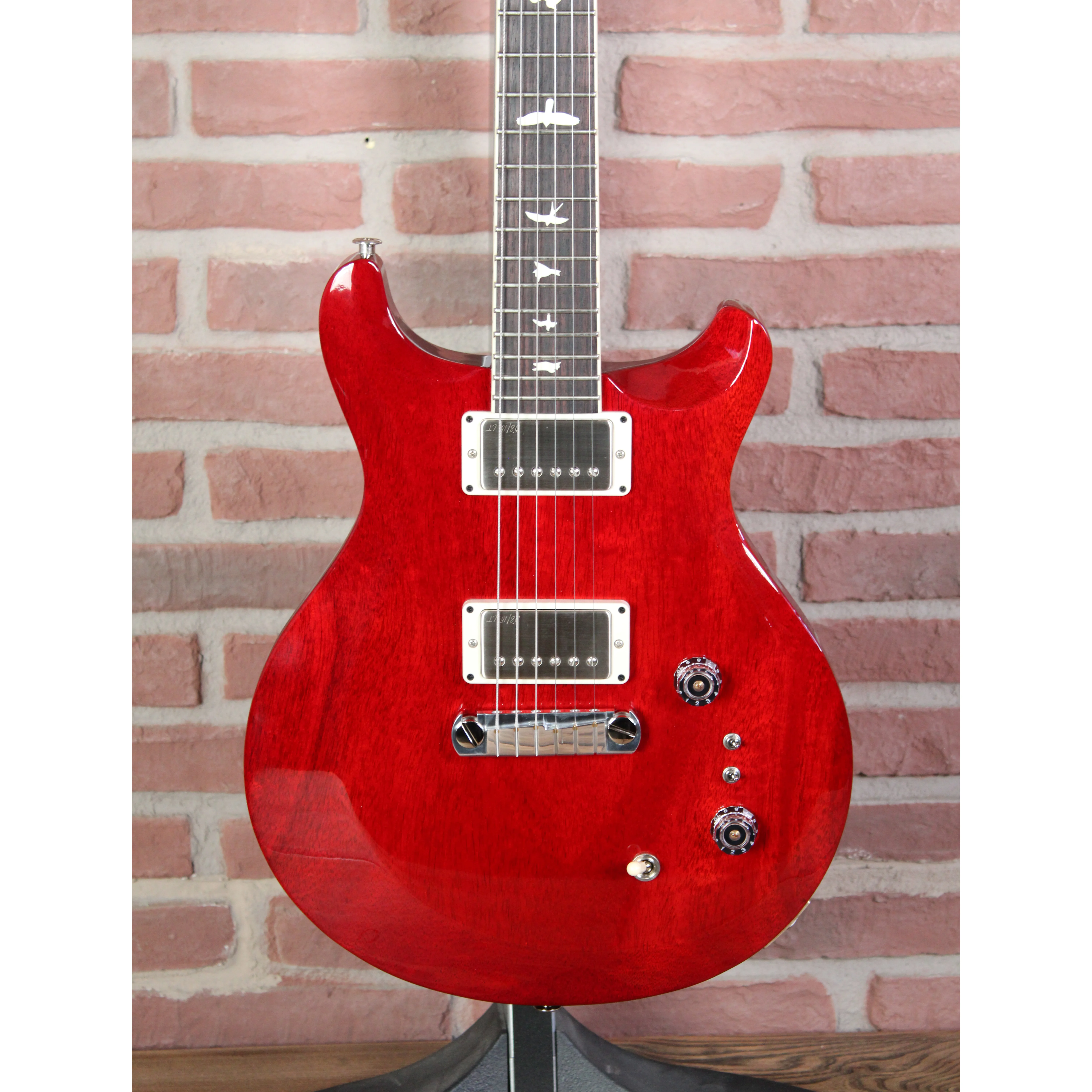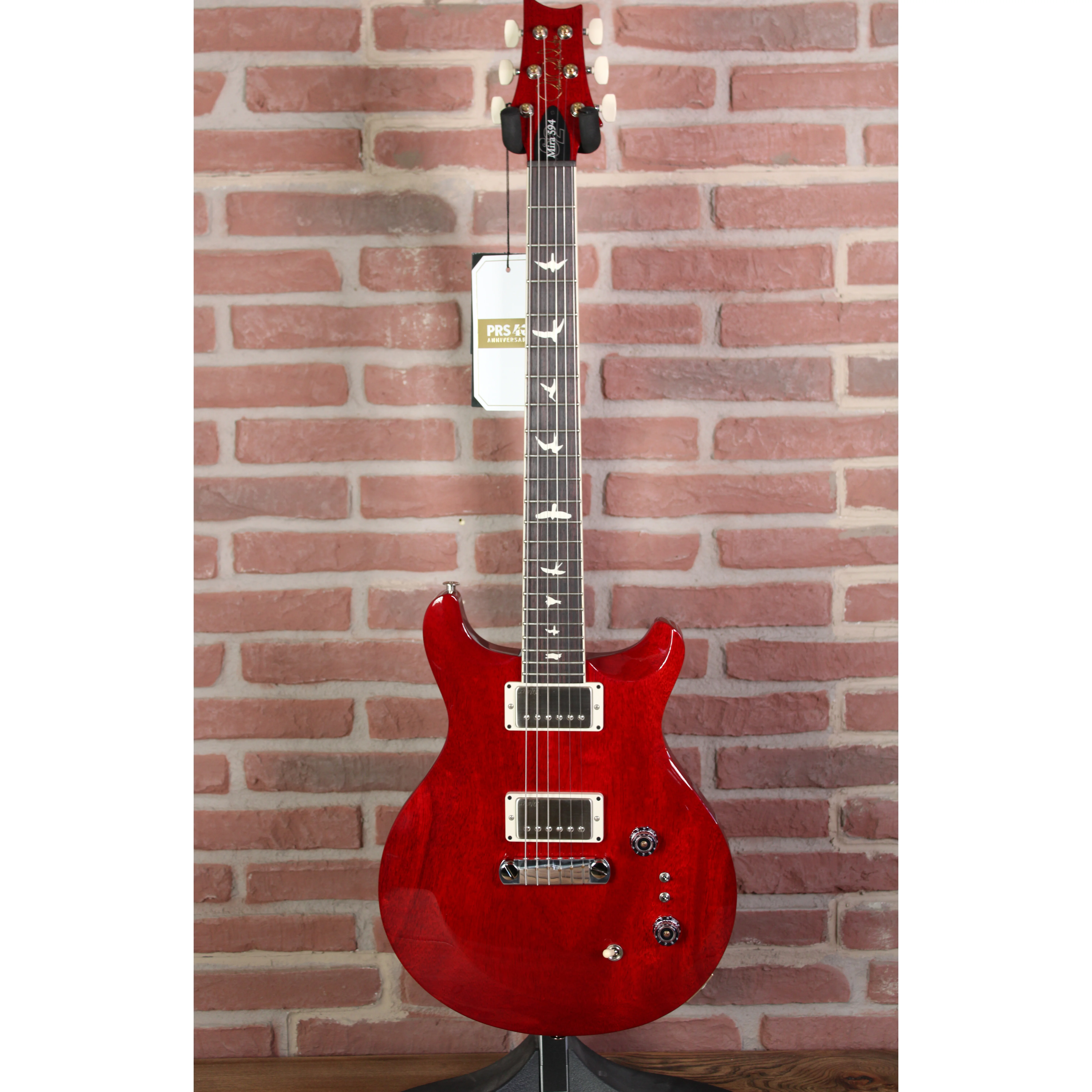 Die PRS S2 Mira 594 Satin ist ein echtes Arbeitstier – puristisch im Look, kompromisslos im Sound. Ihr komplett aus Mahagoni gefertigter Korpus liefert ein druckvolles, warmes Klangbild mit betonten Mitten – ideal für Rock, Blues, Garage und Punk. Zwei PRS 58/15 LT Pickups mit Mini-Toggle-Switches zum individuellen Coil-Tapping eröffnen ein breites Soundspektrum – von vollem Humbucker-Druck bis zu klaren, singenden Single-Coil-Tönen. Der "sinky" Satin-Nitro-Hals liegt wie eingespielt in der Hand und macht schnelles Spiel zur Selbstverständlichkeit.       Die klassische PRS Stoptail-Bridge mit Messing-Inserts und die PRS Phase III Tuner sorgen für ein stabiles, resonanzfreudiges Setup. Die Mira 594 Satin ist mehr als nur ein Instrument – sie ist ein Statement für Musiker, die kompromisslosen Ton, klare Ästhetik und absolute Spielfreude suchen.       Artikeldetails       - S2 Mira 594 Satin   - 6-Saiter   - Solidbody mit asymmetrischem Bevel   - Rechtshänderversion   - Korpus: Mahagoni   - Hals: Mahagoni, scarfed construction   - Halsprofil: Pattern Thin   - Mensur: 24.594" (625 mm)   - Griffbrett: Palisander mit Faux Bone Binding   - Griffbrettradius: 10"   - Bünde: 22   - Inlays: Birds   - Sattelmaterial: PRS   - Sattelbreite: 1 11/16" (ca. 43 mm)   - Pickup: PRS 58/15 LT (Treble & Bass)   - Regler: Volume & Tone, 3-Wege Toggle-Switch, 2 Mini-Toggle Coil Tap Switches   - Steg: PRS Stoptail mit Messing-Inserts   - Hardware: Nickel   - Tuner: PRS Phase III Non-Locking mit Wing Buttons   - Saiten: PRS Signature 10-46   - Farbe: Dark Cherry Sunburst - Inklusive: Premium Gig Bag