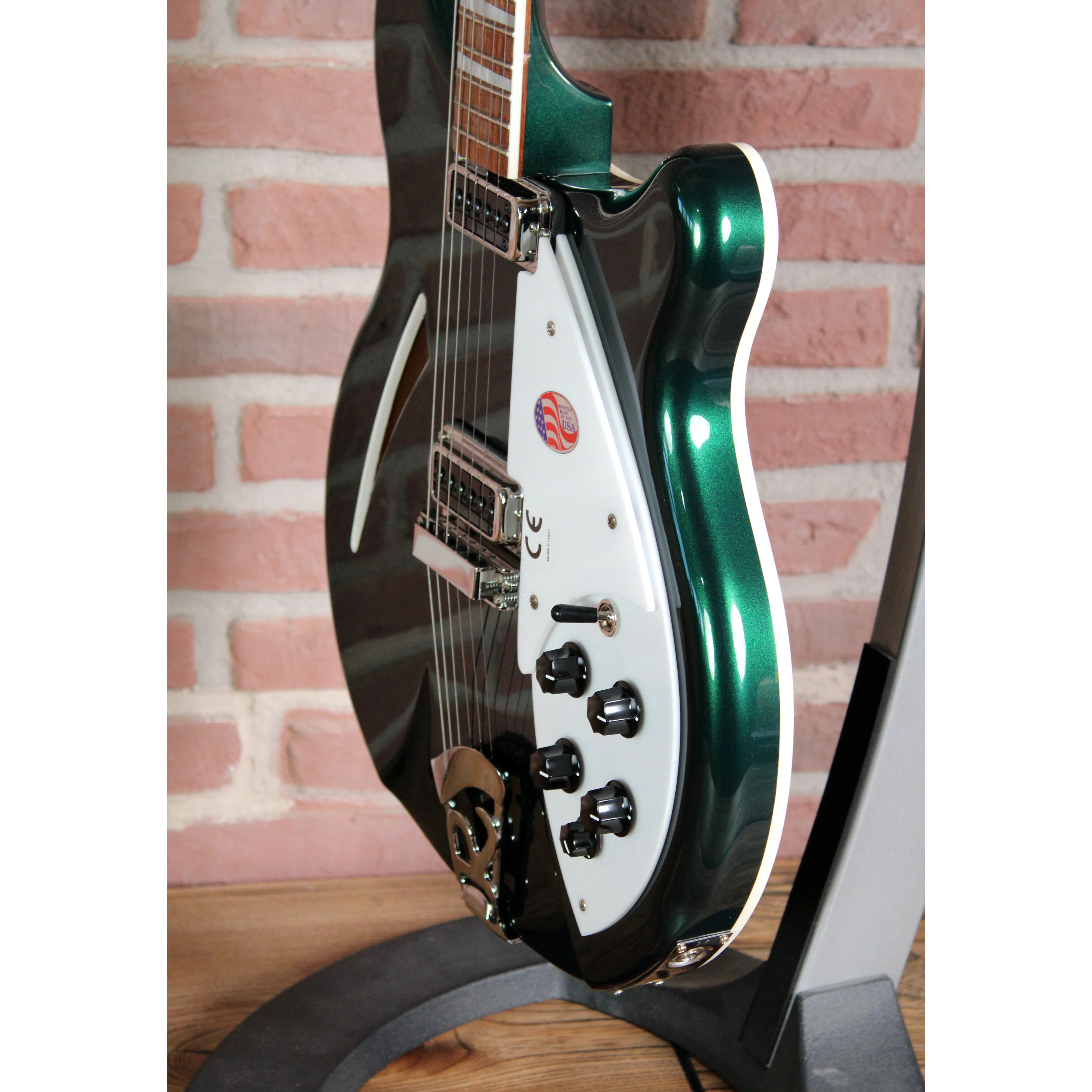 This 6 string guitar features a reliable 6 saddle bridge with the iconic R tailpiece, chrome hardware and precise Gotoh tuners for rock solid tuning stability in everyday use. Factory fitted Rickenbacker Standard 10–46 strings make it ready for professional use right out of the case. The limited Midnight Green metallic finish combined with the 2025 Limited Edition specification makes this 360 an instrument for individualists with a strong sense of style, tone quality and exclusivity. A form fitted Rickenbacker hardshell case is included, keeping the guitar safe on the road and underscoring its premium character.Product Details