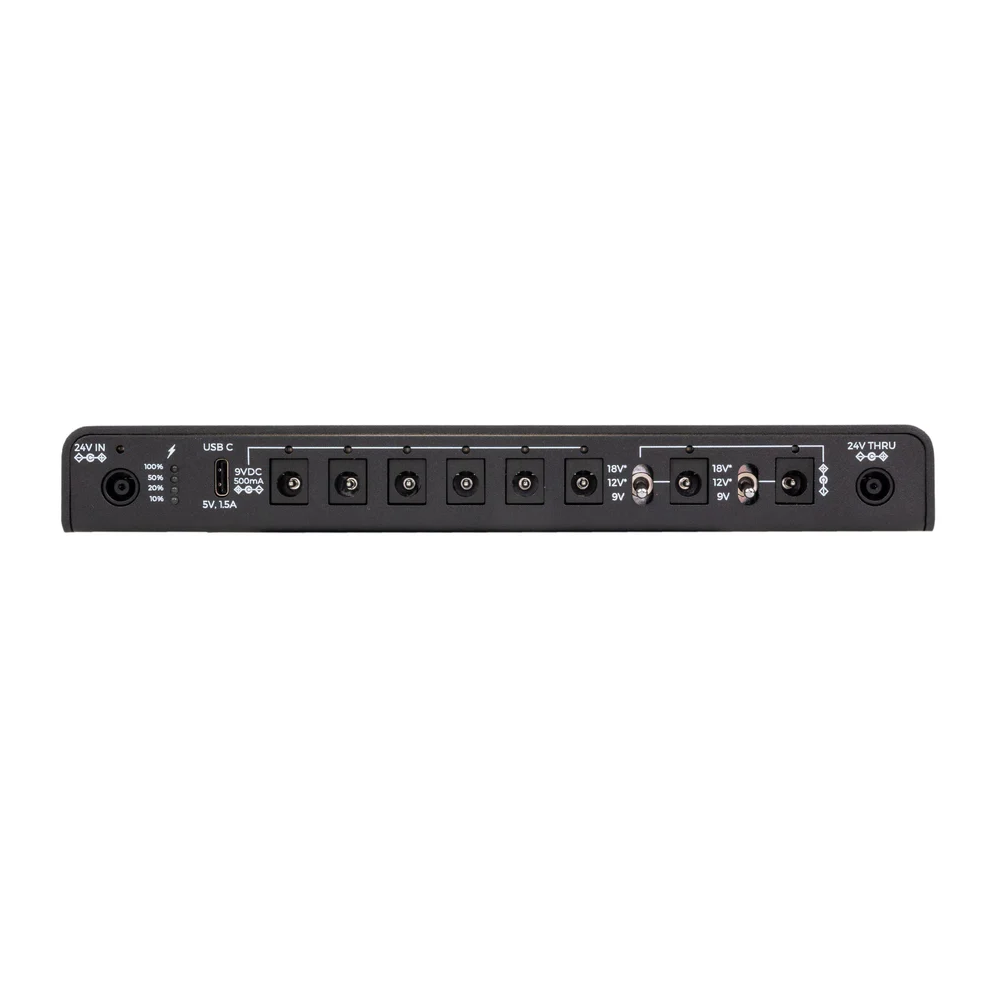 Ein zusätzlich integrierter USB-C-Port versorgt externe Geräte wie Smartphone oder Tablet mit Strom, ideal für Setlisten, Apps oder mobiles Recording während der Performance. Die moderne Switch-Mode-Technologie sorgt dabei für hohe Effizienz, starke Filterung und extrem niedrige Geräuschentwicklung – selbst bei empfindlichsten Setups.