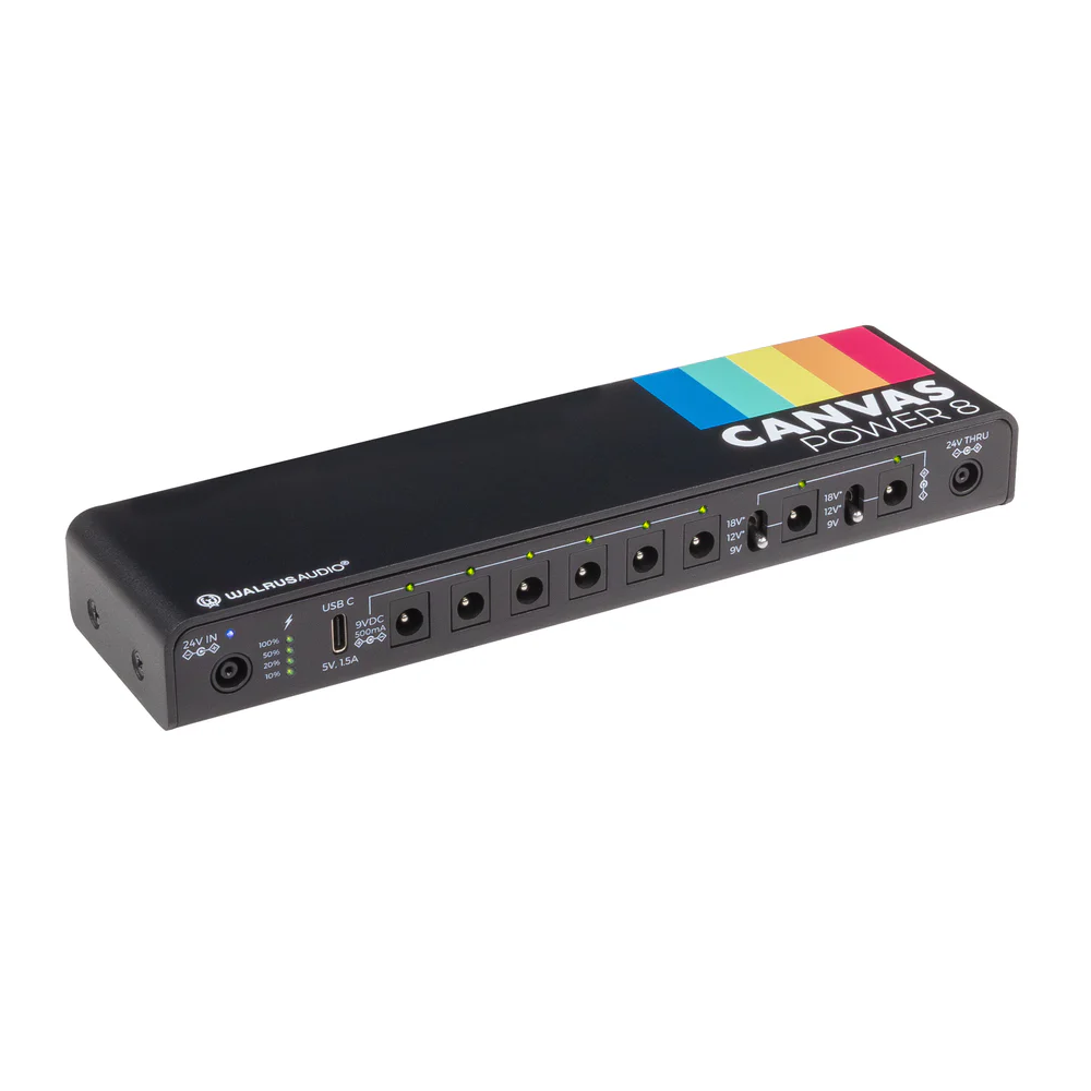 Mit dem Walrus Audio Canvas Power 8 EU erhält dein Pedalboard eine kompakte, leistungsstarke und absolut leise Stromversorgung, die moderne Ansprüche mühelos erfüllt. Ausgestattet mit acht vollständig isolierten Ausgängen, liefert das Power 8 jeweils bis zu 500 mA bei 9 V, ideal für analoge und digitale Effektpedale. Zwei der Ausgänge lassen sich flexibel auf 9 V, 12 V oder 18 V umschalten – perfekt für Geräte mit höherem Spannungsbedarf.