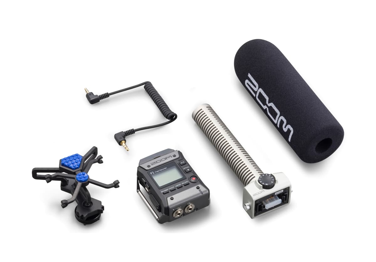 - - Lieferumfang: F1 Field Recorder, SGH-6 Richtmikrofon, WSS-6 Windschutz, SMC-1 Stereo-Mini-Kabel zum Anschluss an eine DSLR, SMF-1 Elastische Halterung, 2 Typ-AAA-Batterien, Kurzanleitung
